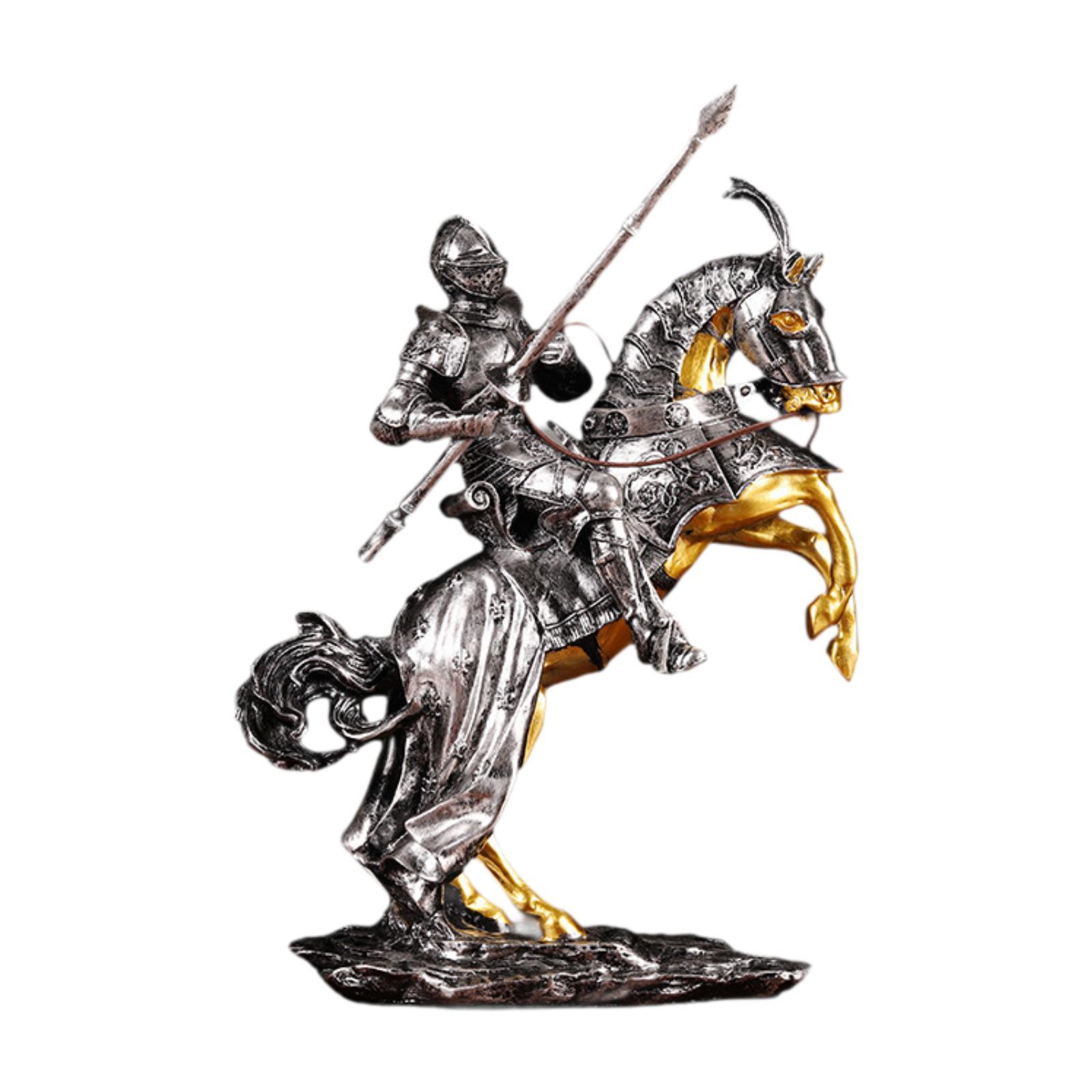 【material de resina】: elaborada con resina, esta figura de caballero garantiza longevidad y robustez al tiempo que mantiene detalles intrincados que capturan la esencia de la artesanía histórica.