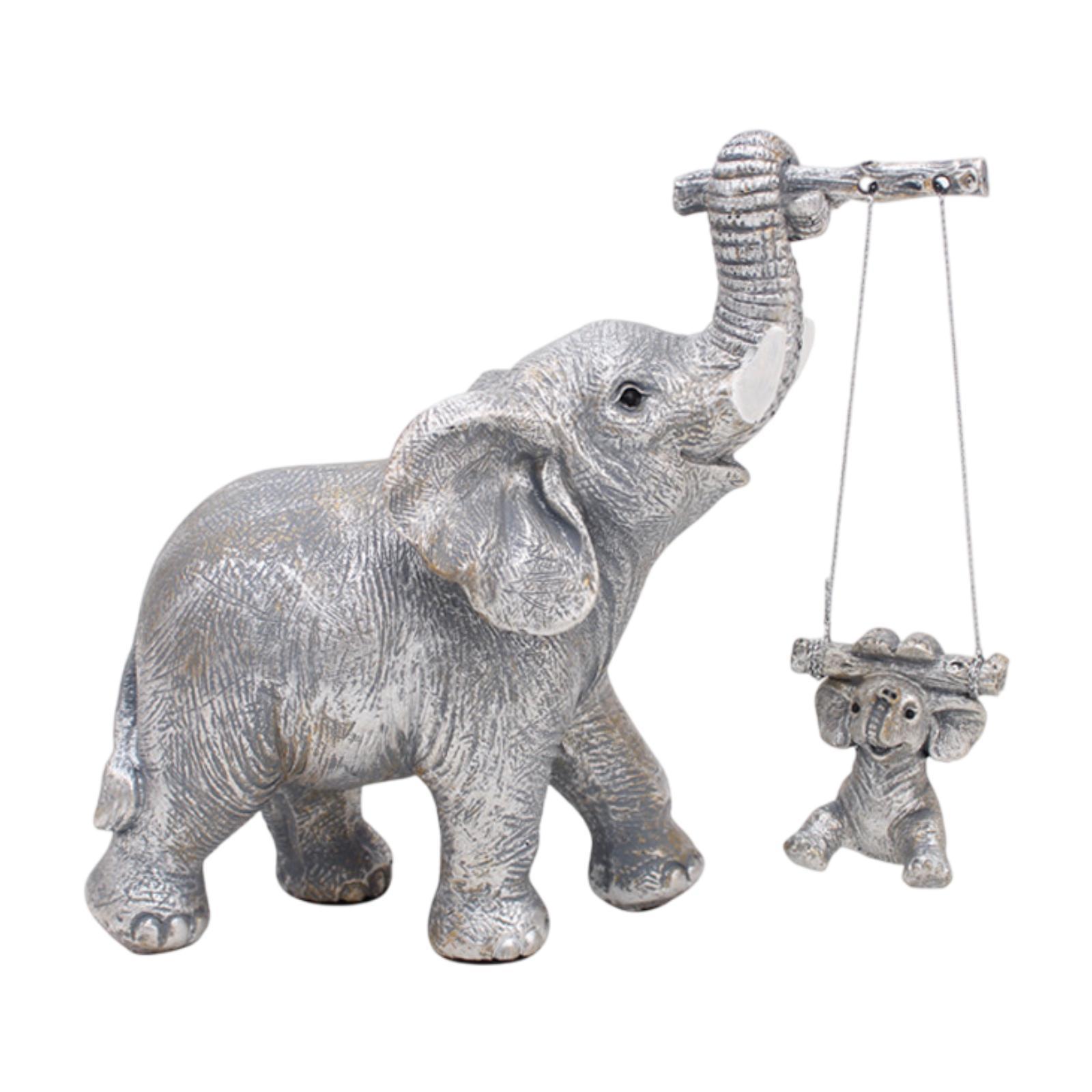 【decoración artística creativa】: esta encantadora escultura de elefantes madre e hijo está diseñada con elefantes madre e hijo jugando en un columpio, creativo y decorativo.