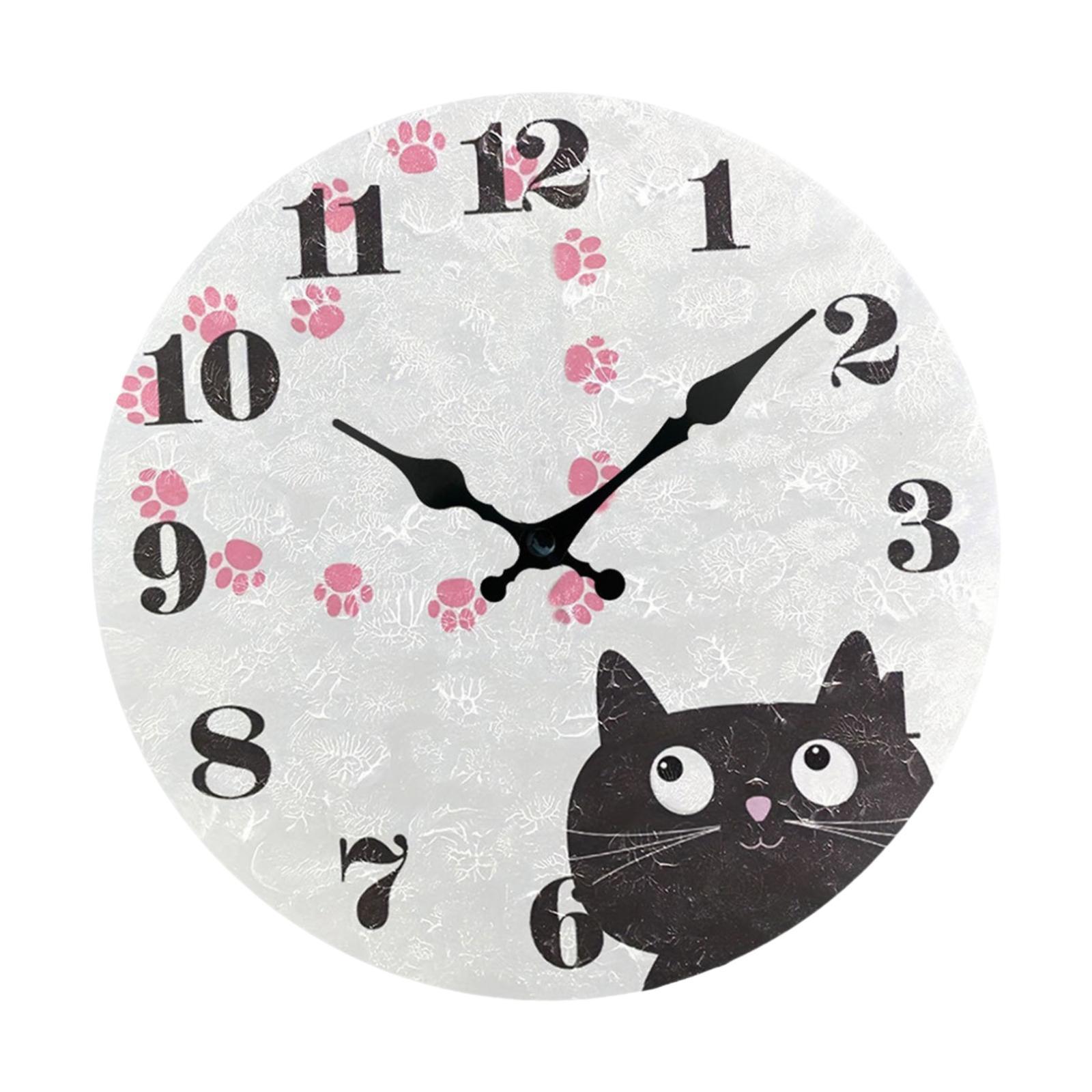 Bonito diseño: el divertido reloj de pared con diseño de gato cuenta con grandes números arábigos y bonitos patrones de gato, únicos e interesantes, que añaden un toque de color vivo a tu espacio.
