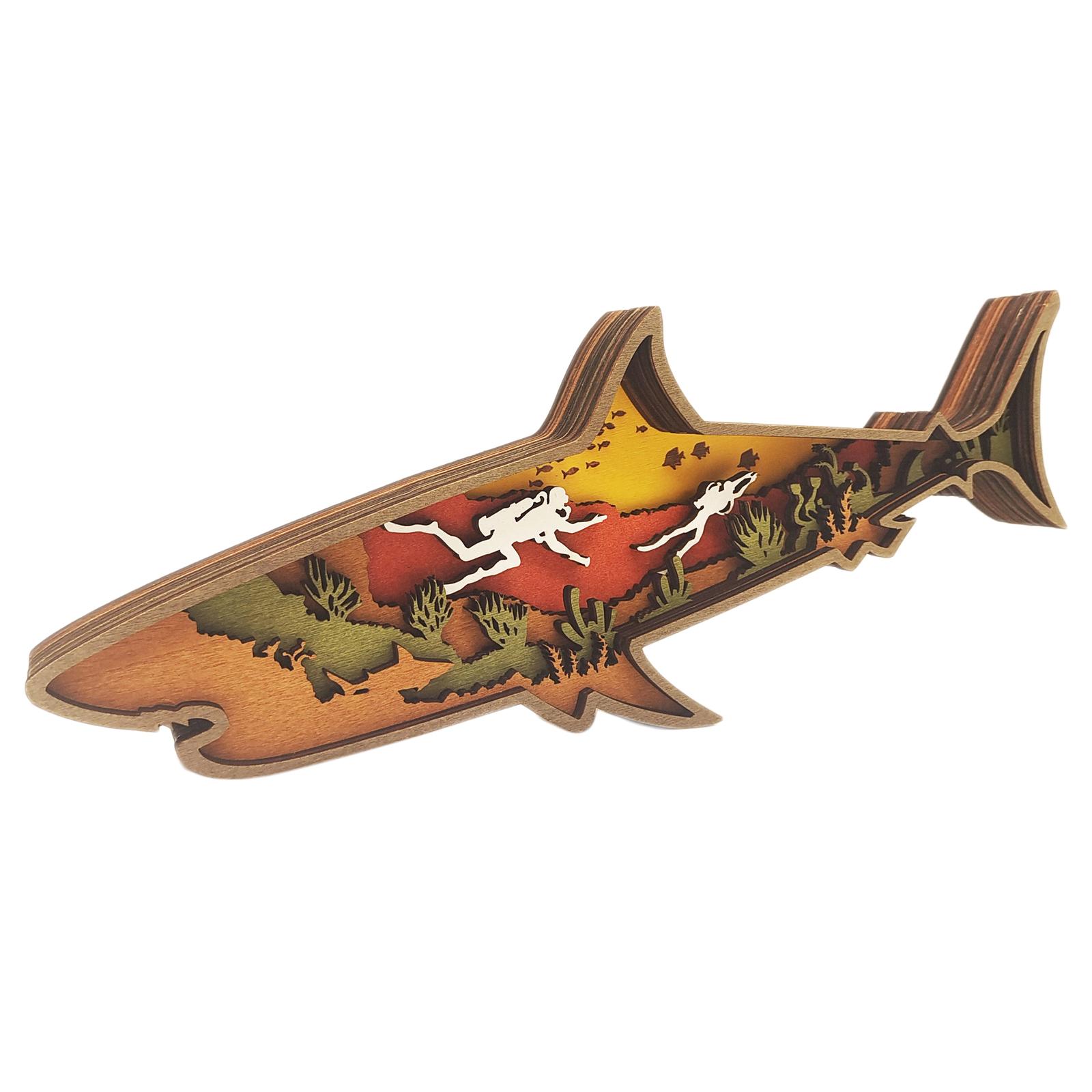 1 pieza de estatua de madera de animal de tiburón oceánico