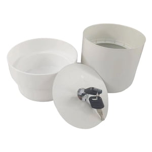 La maceta se divide en dos partes, el compartimento superior se puede plantar con suculentas y flores, y el compartimento inferior es un compartimento oculto que puede contener dinero y llaves, como un escondite de llaves de repuesto al aire libre o como almacenamiento general para objetos de valor.