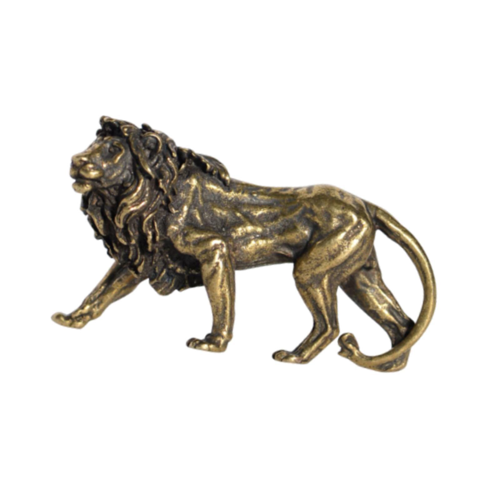 【decoración de escritorio】: figura decorativa de león de latón en miniatura con tallas detalladas, se adapta a cualquier escritorio, estante, sin ocupar demasiado espacio.
