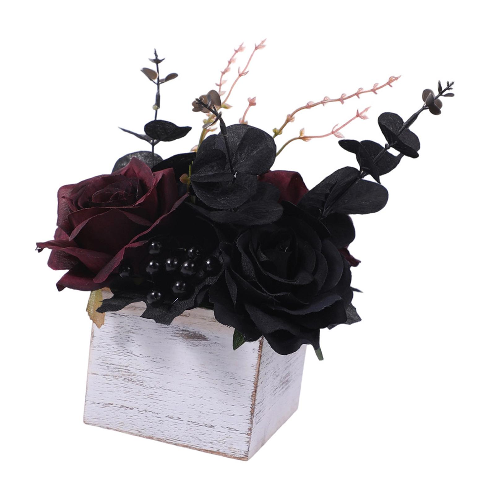 【material】: las flores artificiales en caja de halloween están hechas de madera y otros materiales, ideales para bodas con temática gótica y arreglos florales, centros de mesa.