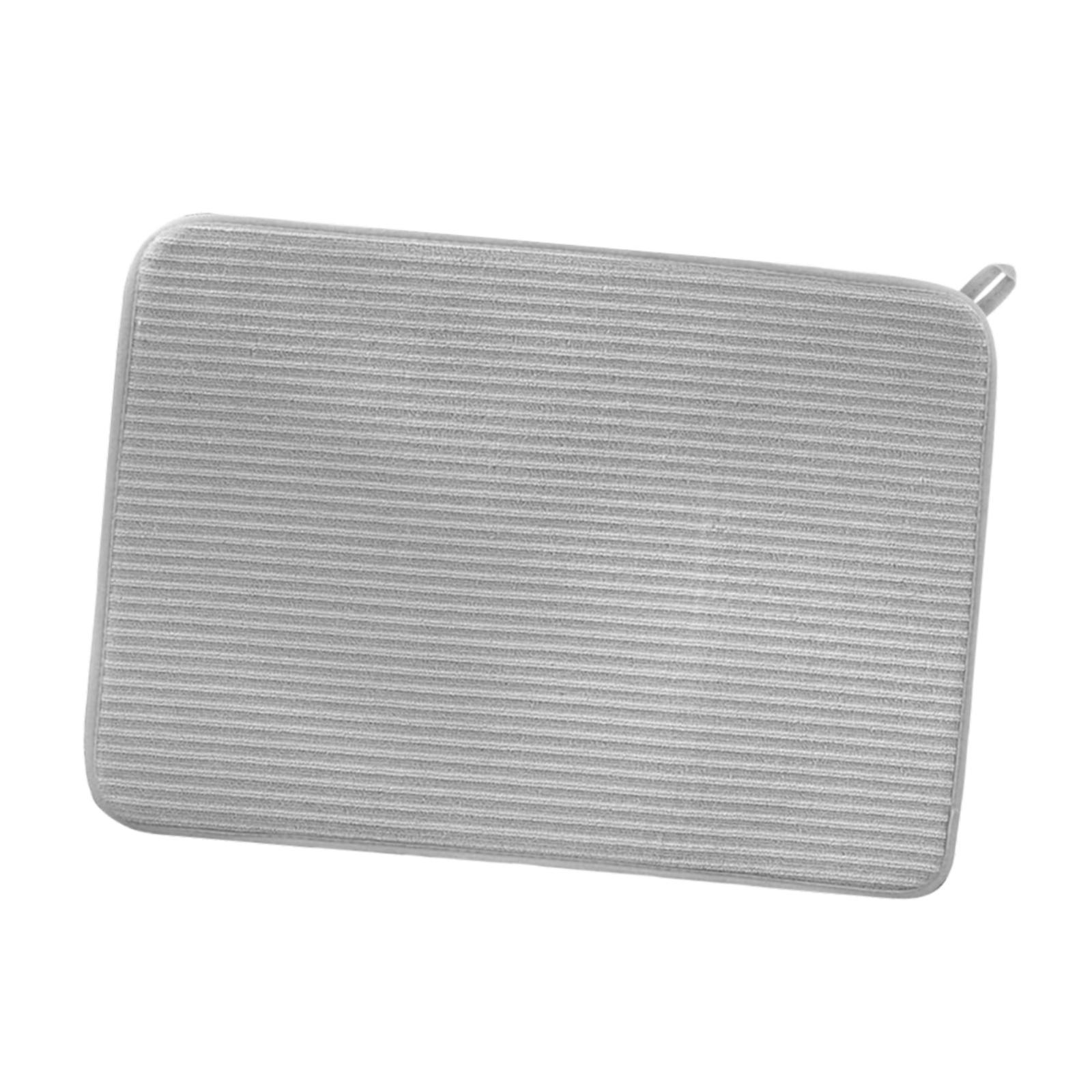【amplia gama de aplicaciones】: la alfombrilla de secado de microfibra puede apilar y organizar cuidadosamente sus cubiertos, vasos, cubiertos, ollas y sartenes, etc., la alfombrilla de escurridor se puede utilizar como una herramienta universal para gabinetes de cocina, gabinetes de baño, gabinetes de yates, mostradores de garaje y más