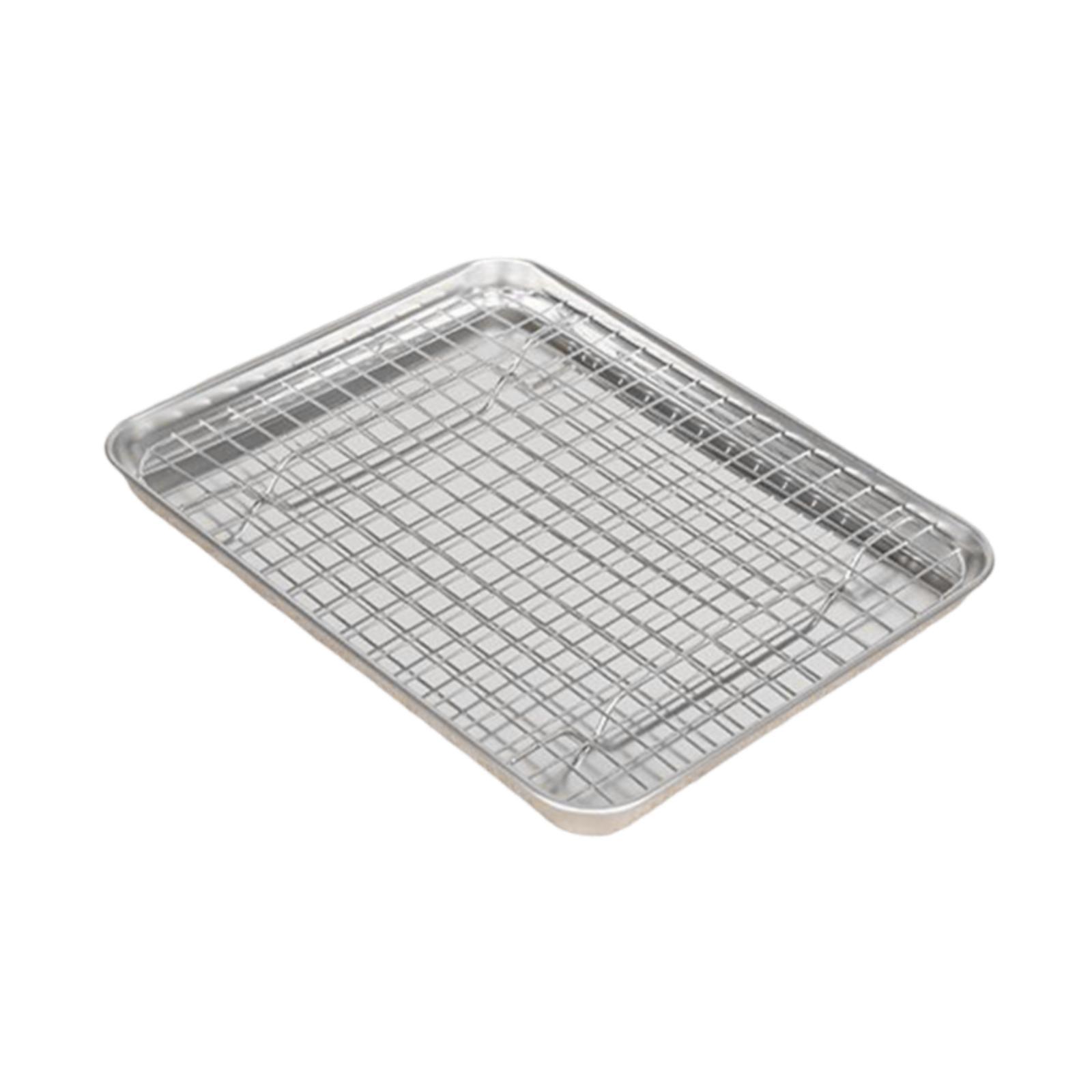 【material de primera calidad】: fabricada en acero inoxidable, esta bandeja para hornear con juego de rejilla está diseñada para brindar durabilidad y uso a largo plazo, lo que garantiza que resista las actividades regulares de la cocina sin oxidarse ni rasgarse.