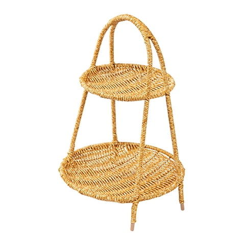 Bothyi - Bandeja De Cesta Tejida, Plato De Mimbre Decorativo Para Desayuno, Merienda, Mesa De Centro, Redondo, Tres Capas