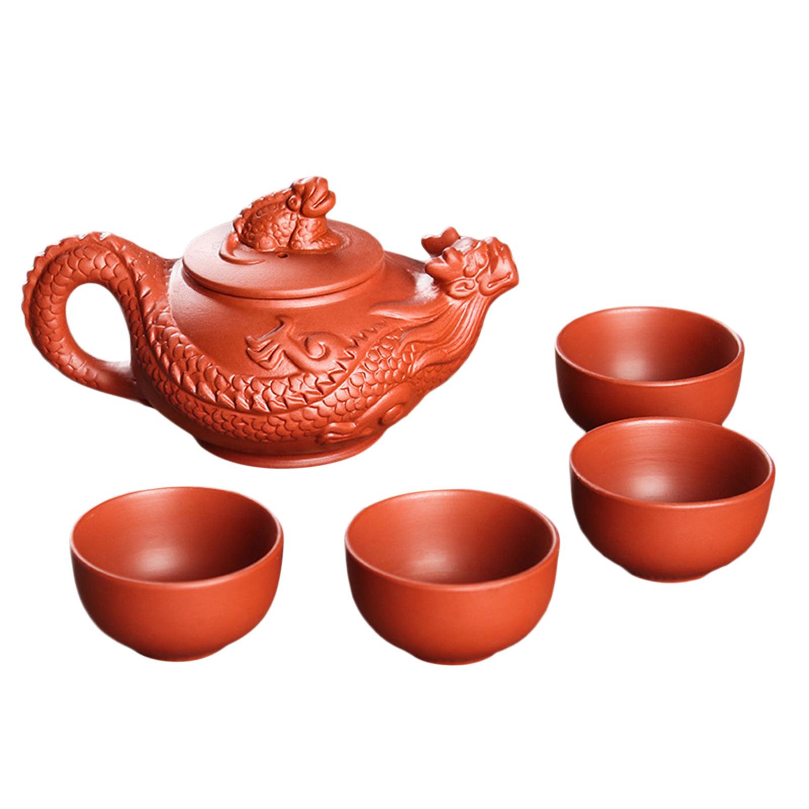 【diseño único】: la tetera presenta un pequeño diseño de dragón volador, tazas de té con artesanía tradicional, resistente a altas temperaturas, superficie esmaltada, elegante y hermosa.