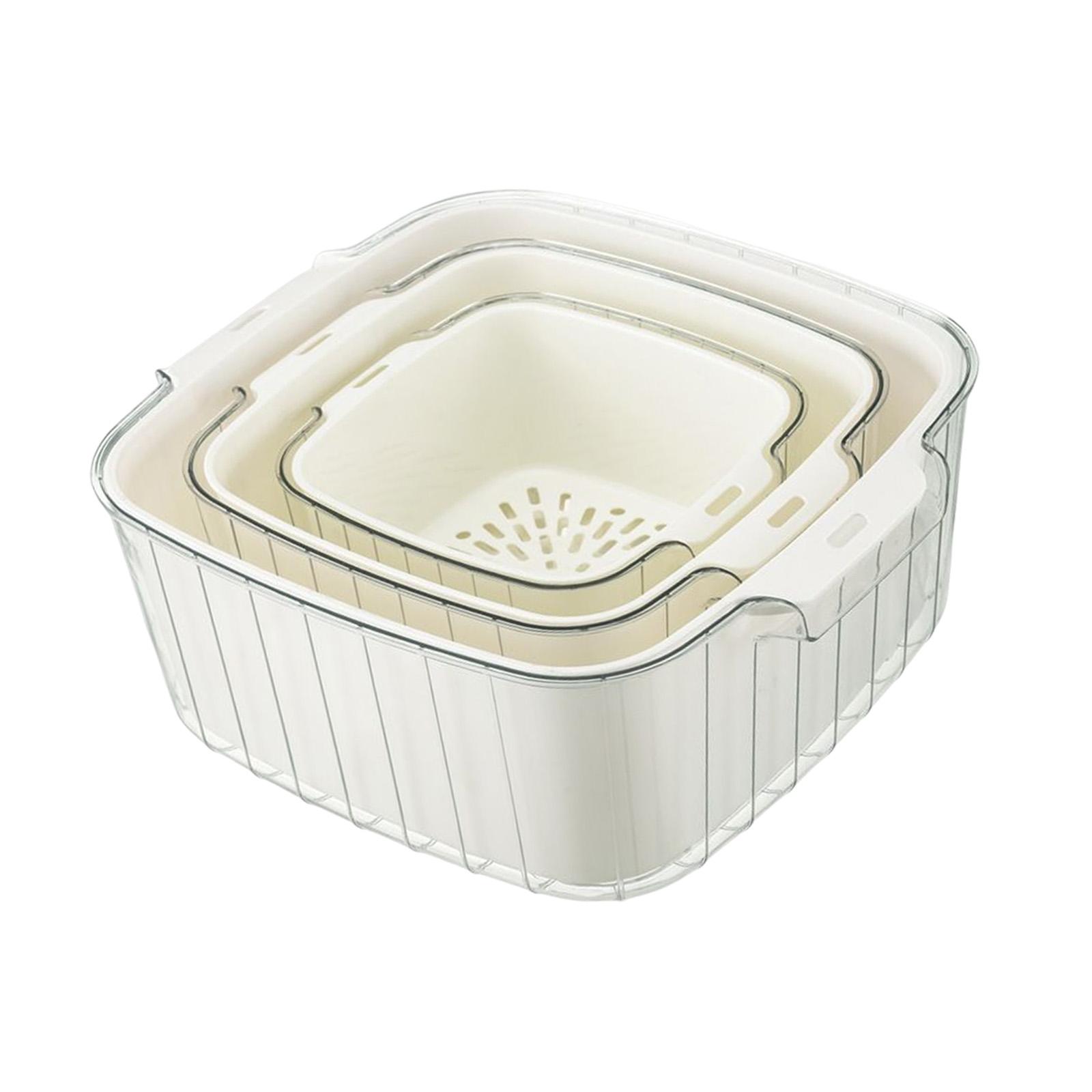 【cuenco de drenaje de doble capa 2 en 1】 cada tamaño de colador y cesta se puede usar en pareja, use el tazón y el colador juntos para drenar y almacenar agua