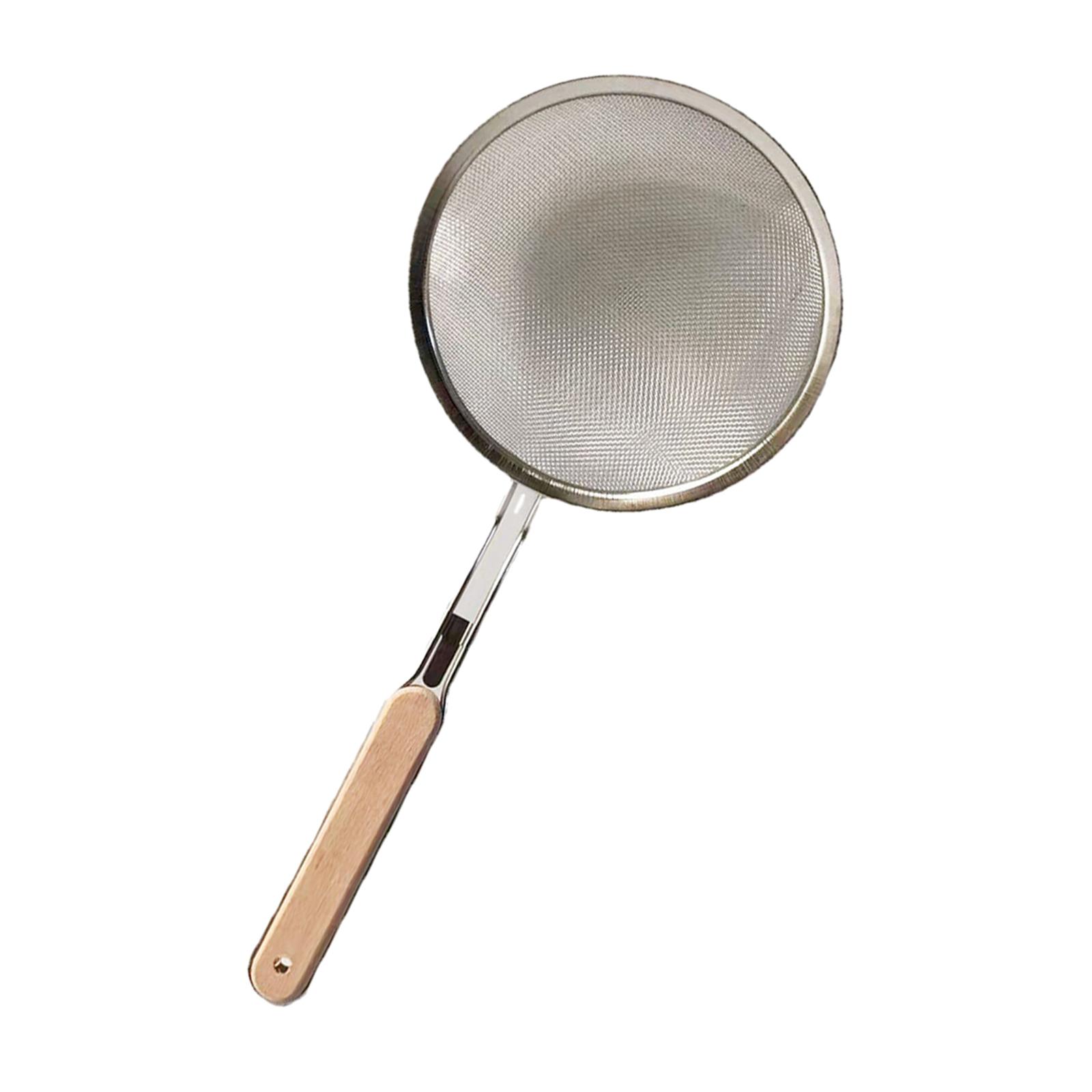 colador de malla fina: con cabezal de malla fina de alambre de acero inoxidable de tejido apretado para una filtración rápida sin trozos ni grumos y un drenaje rápido del exceso de líquidos a fondo, se puede utilizar para separar la grasa flotante, la grasa, la espuma y filtrar la quinua, el miso y los granos.