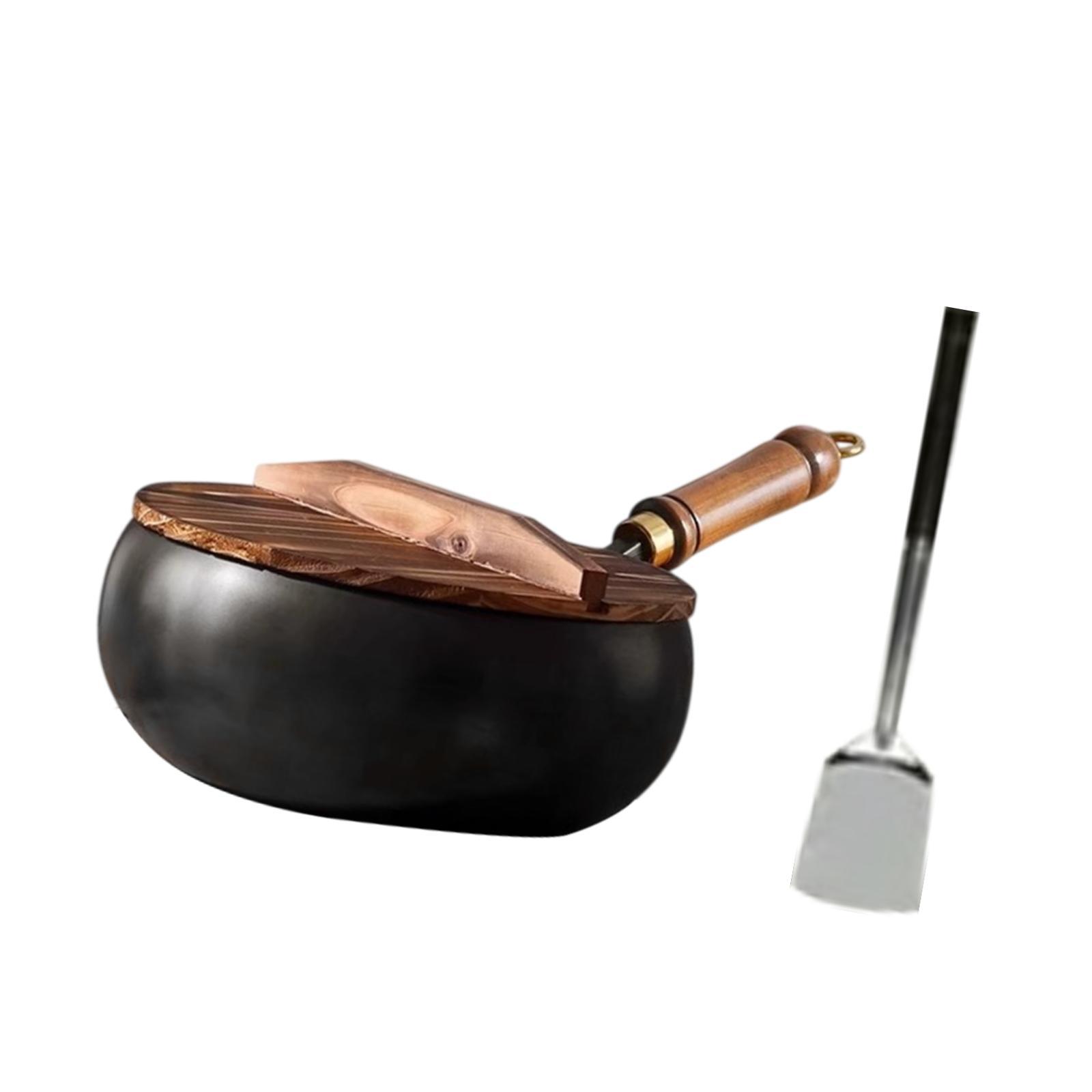 【material】: este wok de 9.45 pulgadas con tapa y espátula está hecho de material de hierro refinado, superficie lisa y sin recubrimiento, diseño de olla profunda, fondo grueso y pared delgada, realiza calor uniformemente y rápidamente