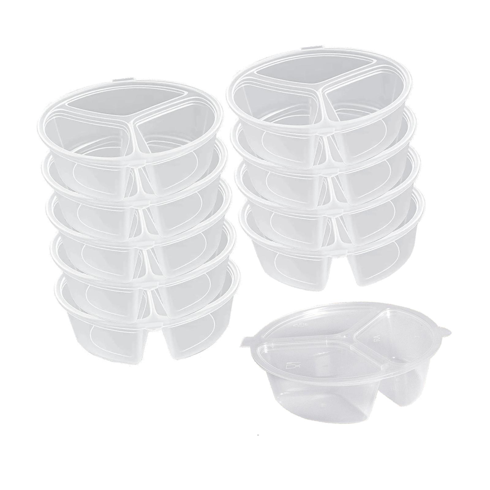 Diseño versátil de 3 compartimentos: estos recipientes para refrigerios cuentan con tres compartimentos, lo que permite guardar 3 refrigerios o salsas diferentes por separado sin mezclarlos. diseñados para controlar las porciones, disfrute de sus refrigerios mientras mantiene una dieta equilibrada.