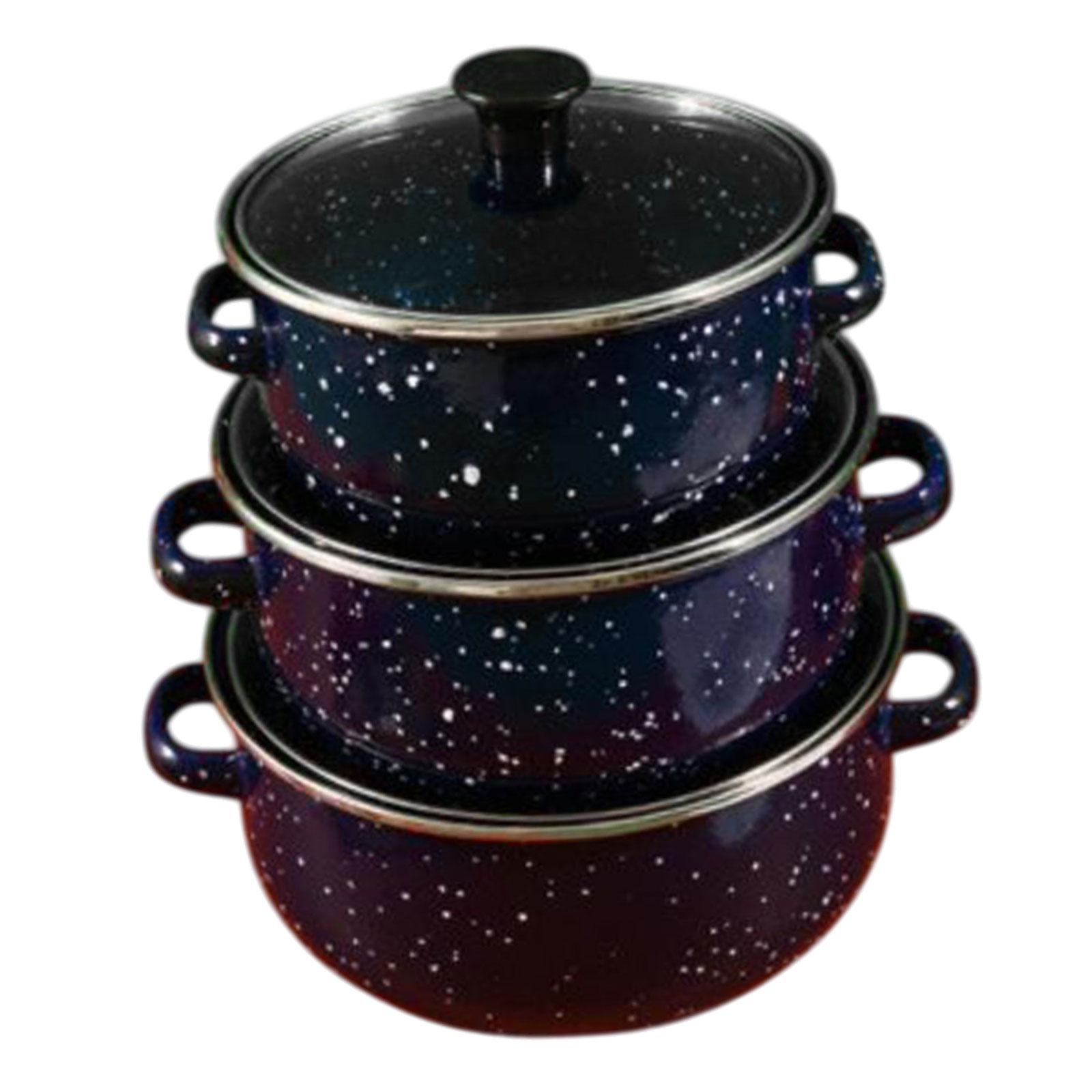 Bothyi - Olla De Esmalte De 3 Piezas Con Tapa, Resistente, Para Cocinar A Fuego Lento, Para Uso Doméstico Y Restaurante, Color Azul | Lider Electrohogar