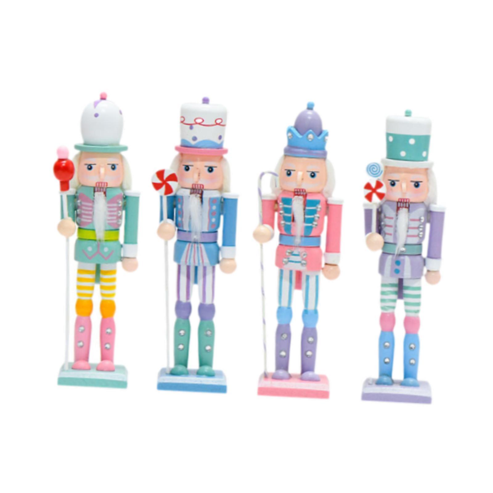 【juego de 4】: el adorno de cascanueces navideño incluye 4 figuras de madera con disfraces variados, ideal para exhibir en casa durante las fiestas.