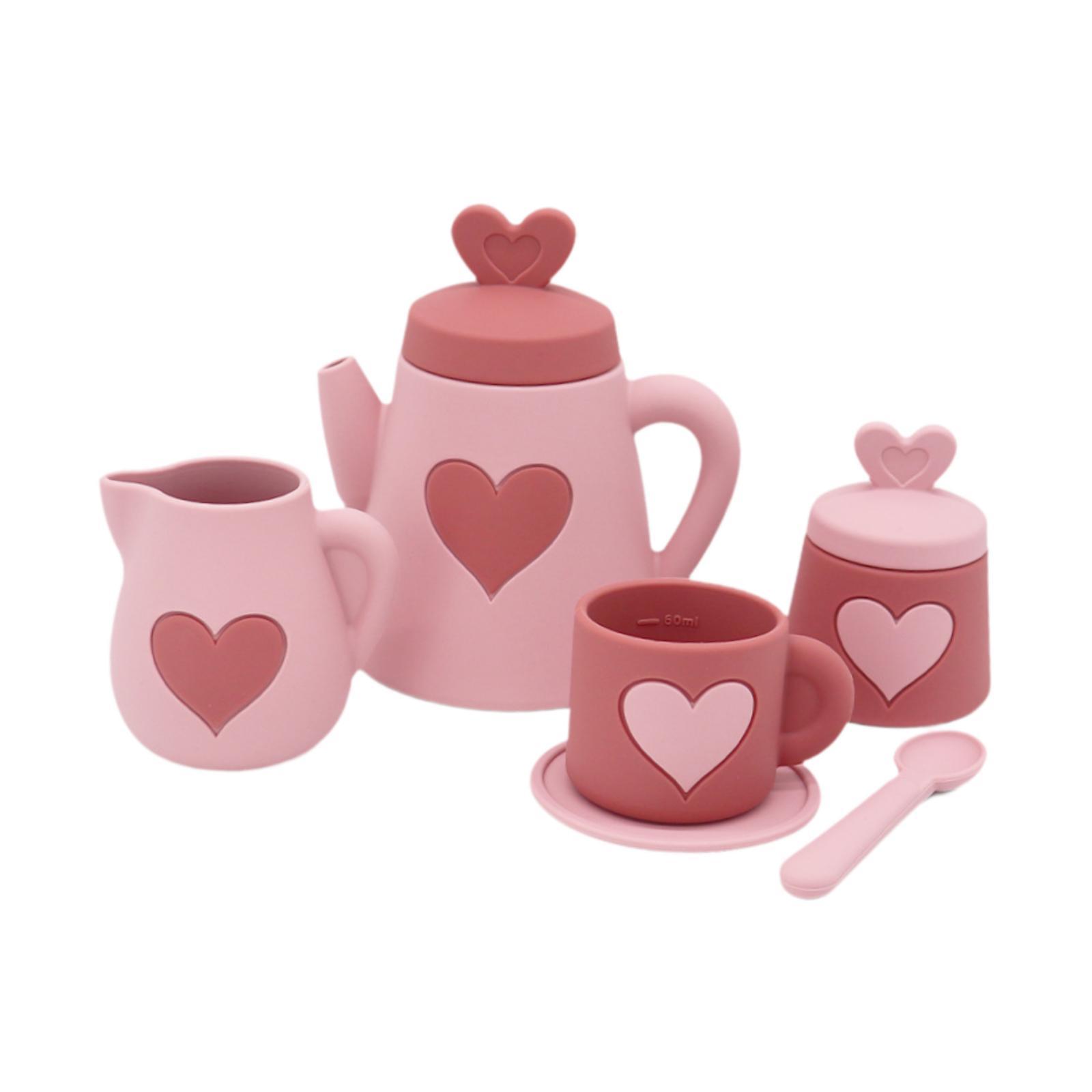 1 juego de juguetes de cocina fiesta de té (incluye 1 tetera con tapa, tetera, taza de té con tapa, taza de té, platillo, cuchara)