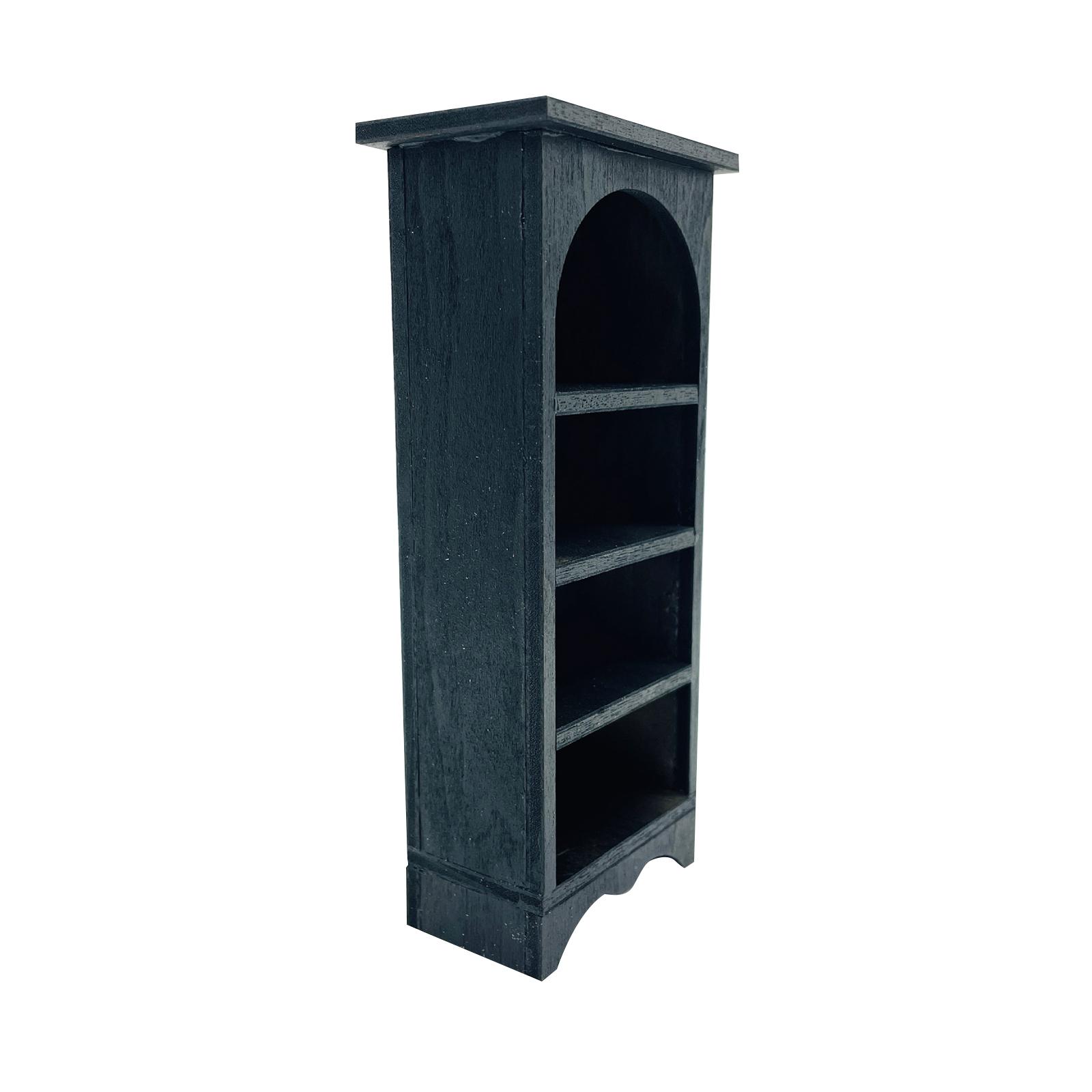 【aplicación】: la estantería de madera negra en miniatura es adecuada para decorar mini cocinas y casas de muñecas, haciendo que su casa de juguetes sea más completa y detallada.
