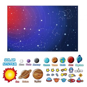 【material】el tablero de aprendizaje del espacio exterior está hecho de material de fieltro, este gráfico es suave, resistente al desgaste, impermeable, fácil de limpiar y reutilizable.