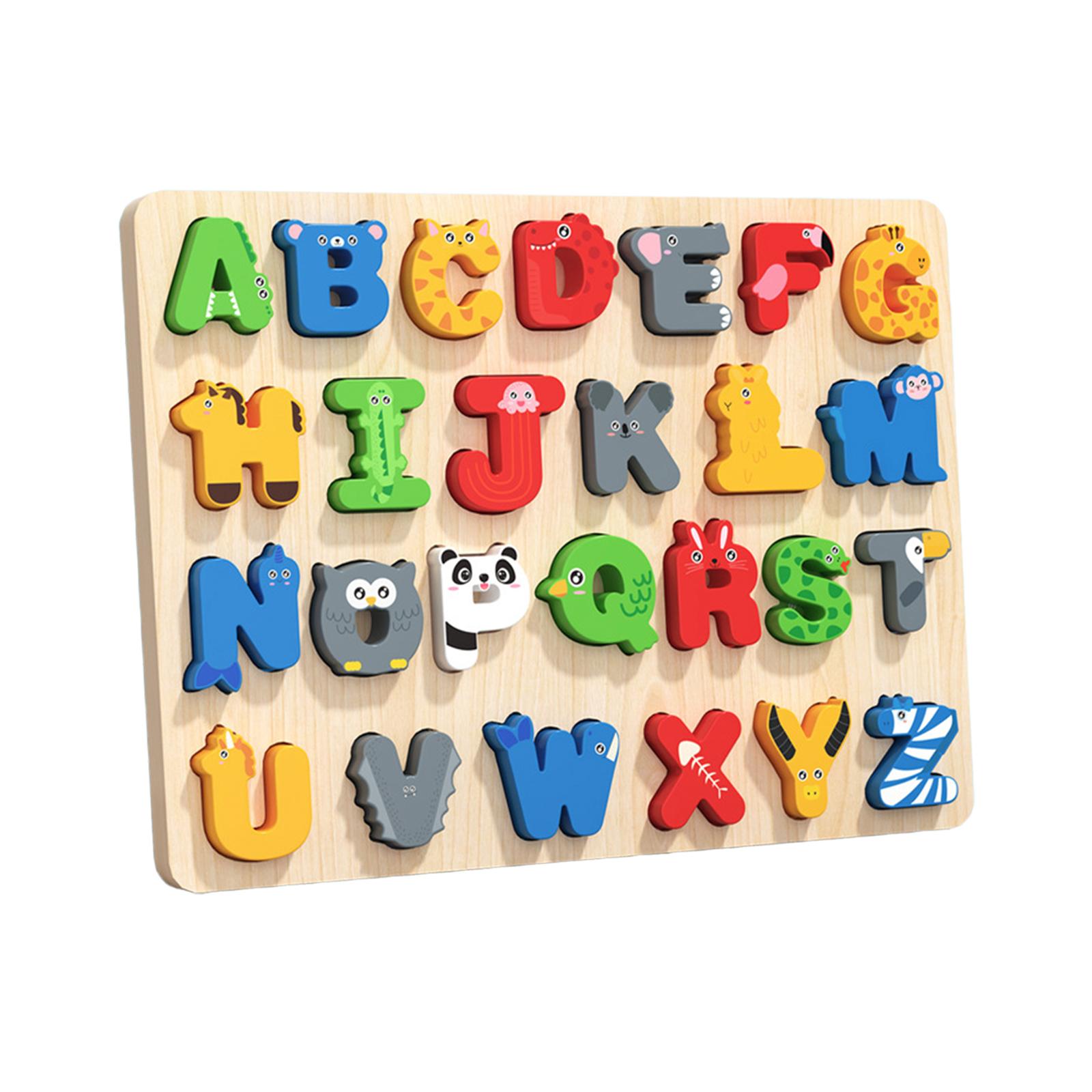 【juguete de aprendizaje del alfabeto】: el rompecabezas del alfabeto de madera, combinado con 26 letras en inglés, es una excelente manera para que los niños aprendan animales y letras mientras se divierten.
