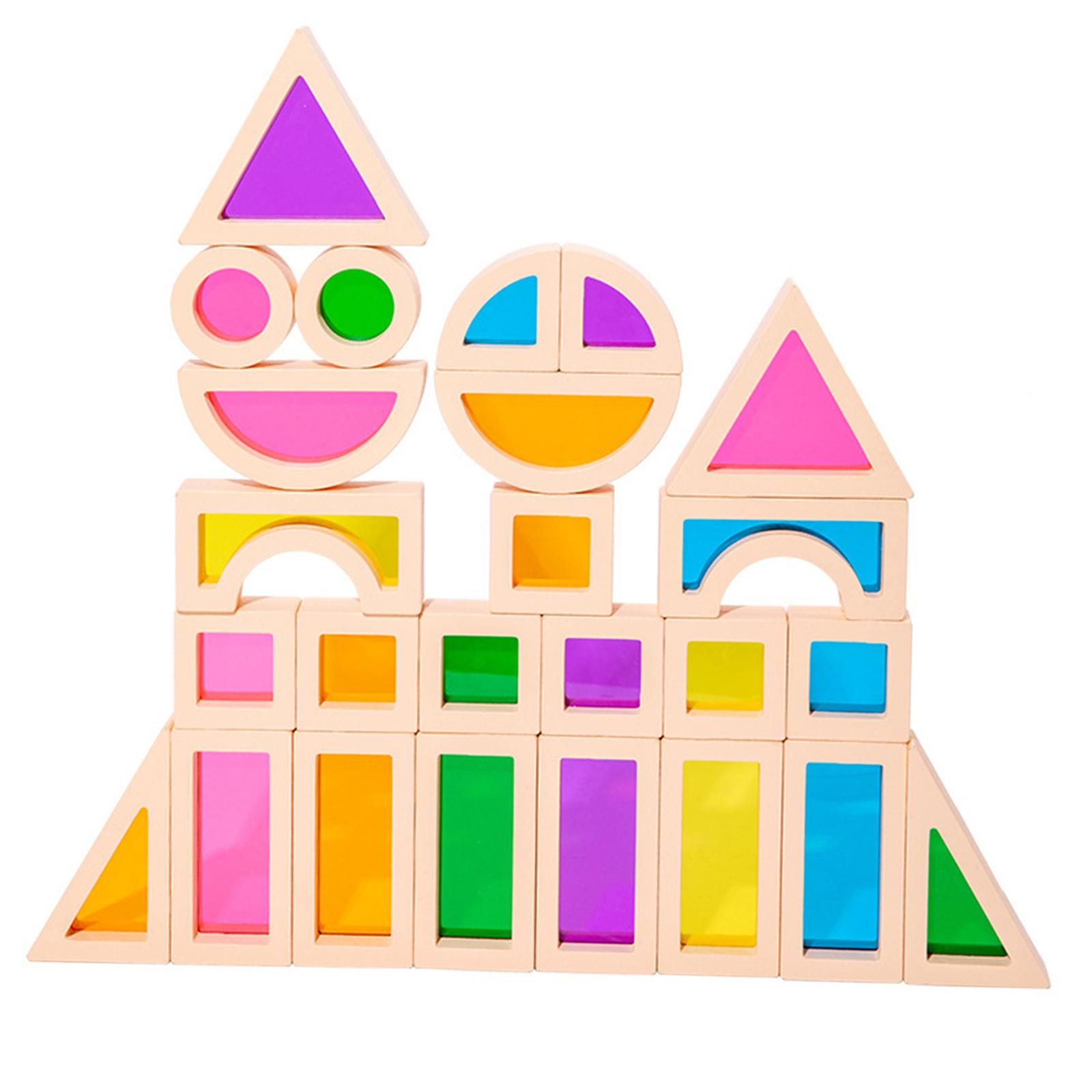 【material de alta calidad】: los bloques de apilamiento de madera están hechos de madera y acrílico, mano de obra fina, esquinas redondeadas y lisas, que cuidan las manitas del bebé.