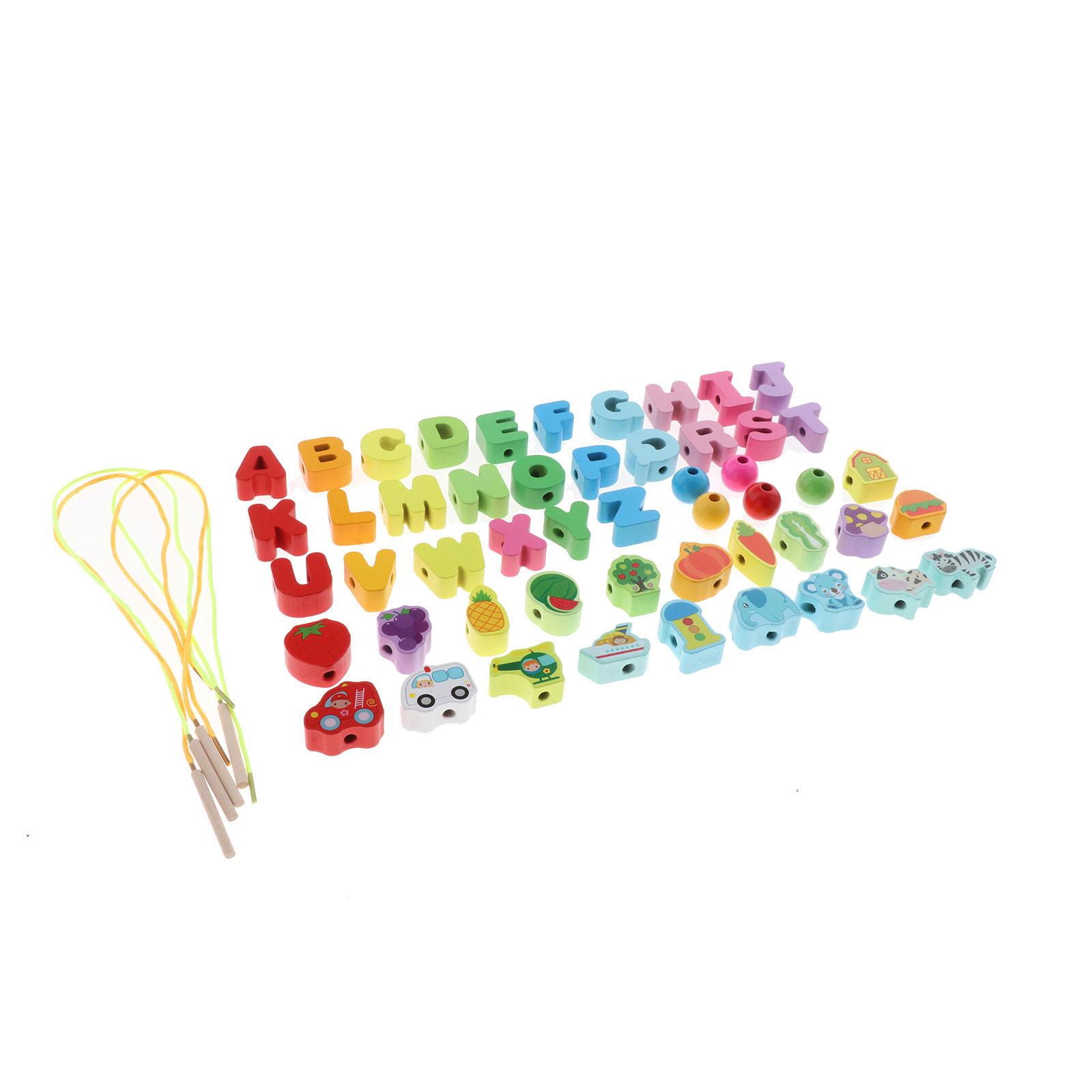 Juguete de cuentas de madera: el juego de cuentas de madera incluye diferentes patrones de letras, animales, frutas y verduras.