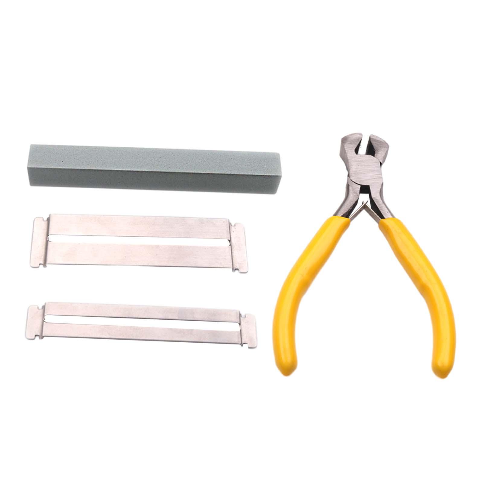 el paquete incluye: recibirás una herramienta de luthier para guitarra, que incluye 1 alicates para traste de guitarra, 2 protectores de diapasón, 1 piedra de amolar; ideal para amantes de la guitarra, luthier, bricolaje.