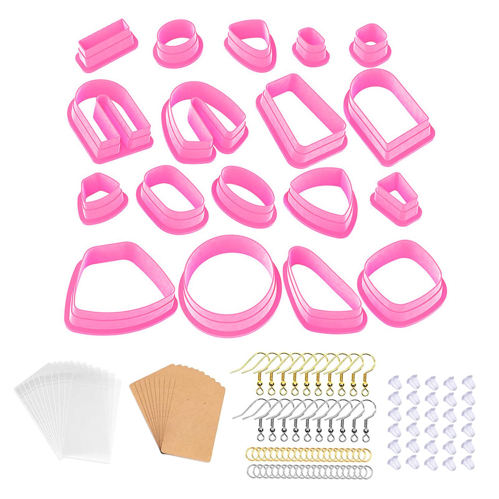 Juego de herramientas de arcilla polimérica: el paquete incluye 18 cortadores de arcilla polimérica, 20 ganchos para pendientes (10 piezas de oro y 10 piezas de plata) y 30 anillos de salto (15 piezas de oro y 15 piezas de plata), 30 piezas traseras para pendientes, 10 piezas de tarjetas para pendientes y 10 piezas de bolsas autosellantes.