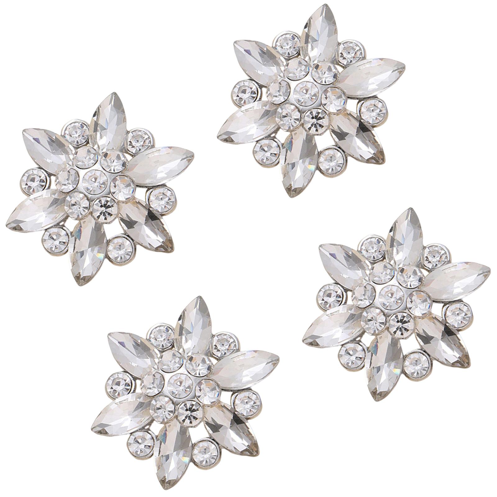 Bothyi - 4 Piezas Bling Moda Botones De Diamantes De Imitación Flor Adorno Decorativo Plata | Lider Electrohogar
