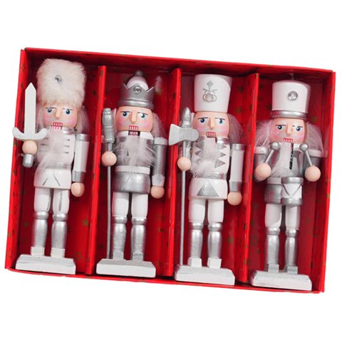 Bothyi - Soldado Cascanueces De Madera (4 Unidades) Para Decoración Navideña De Mesa, Plateado, 12 Cm | Lider Electrohogar