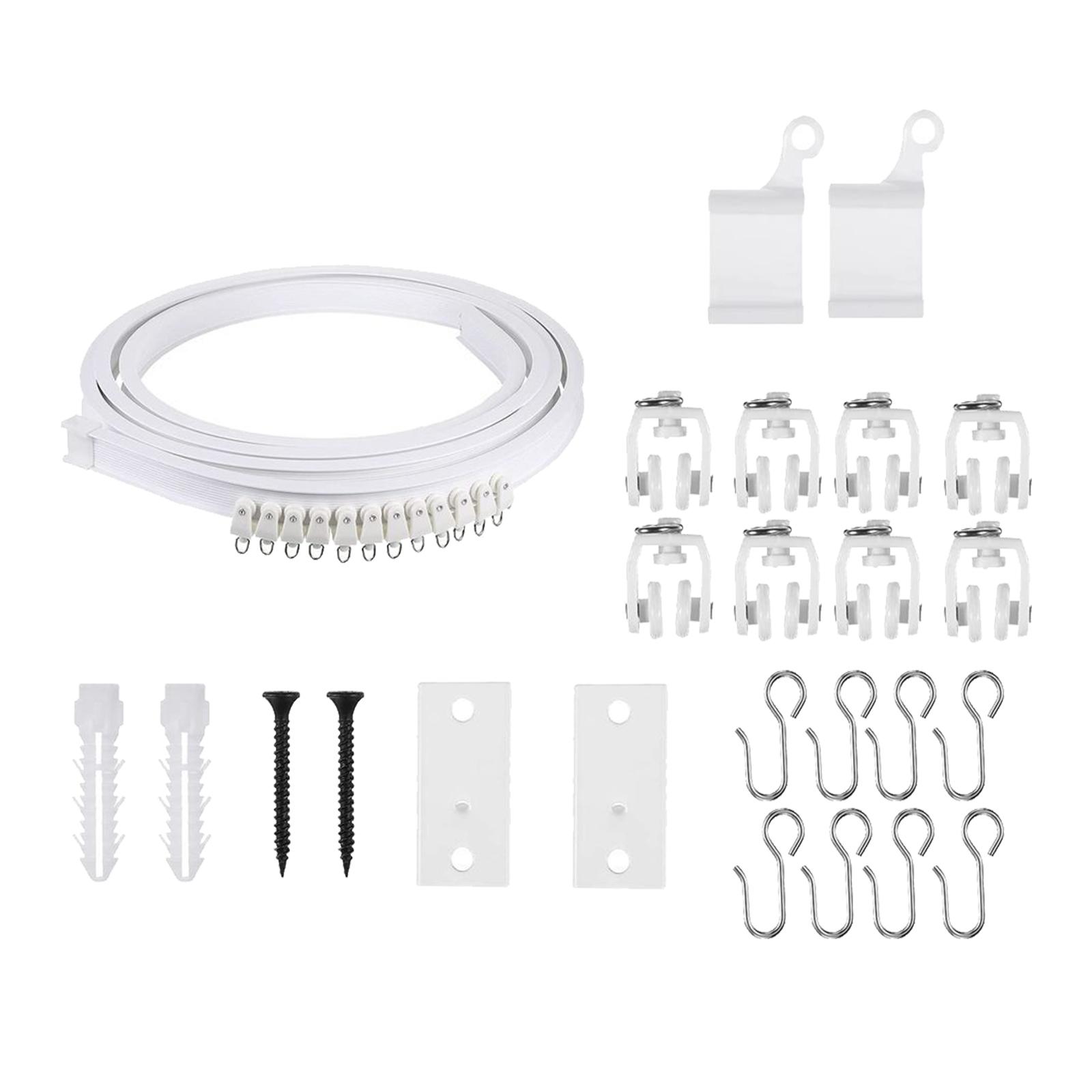 Juego de rieles para cortinas: contiene un riel para cortinas de 100 cm, 8 rodillos, 8 ganchos, 2 tapas, 2 tornillos, 2 anclajes para paneles de yeso y 2 soportes de montaje.