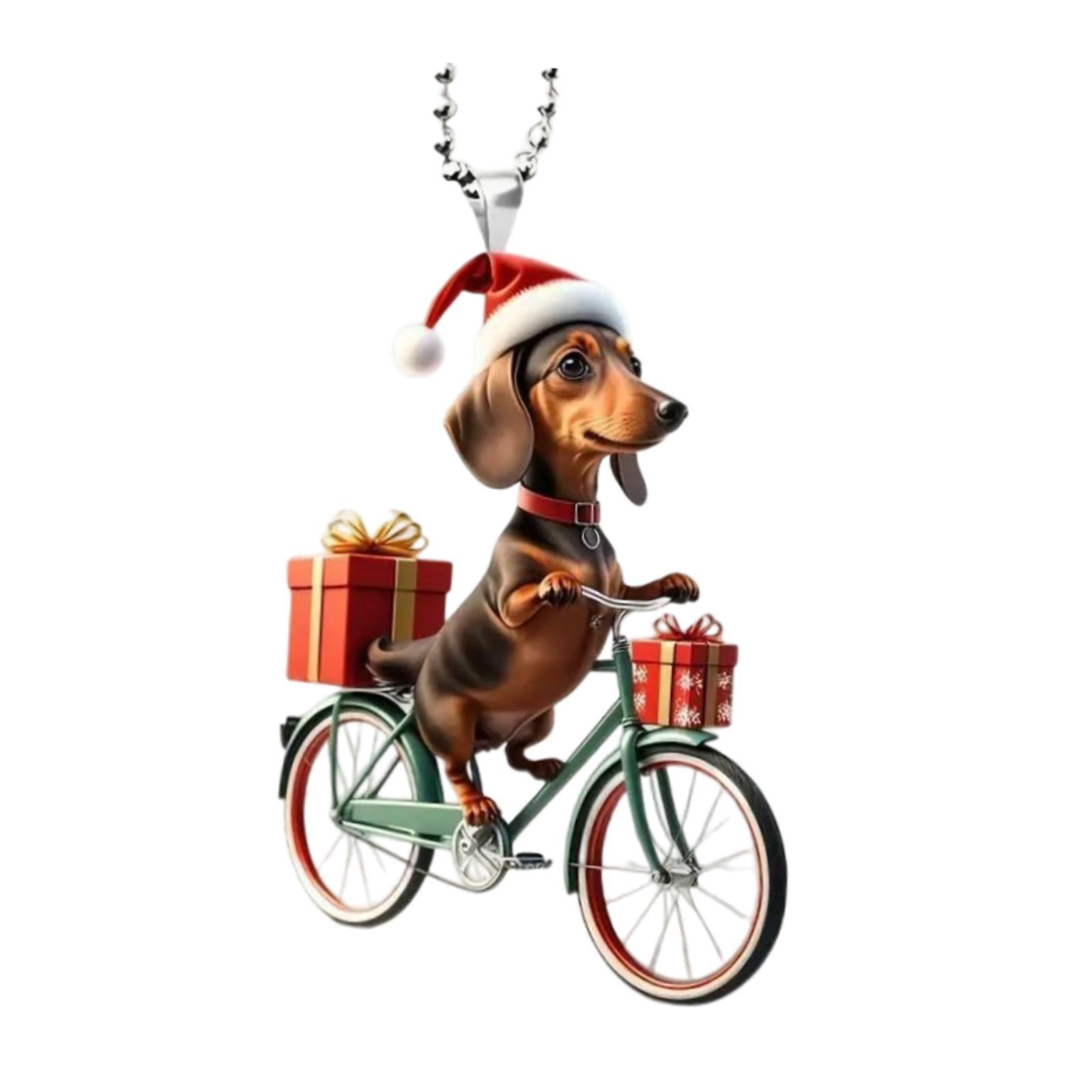 【decoración festiva】: el adorno del árbol de navidad presenta un lindo perro andando en bicicleta, exquisitamente hecho con un sombrero navideño, agregando un ambiente festivo a su navidad.