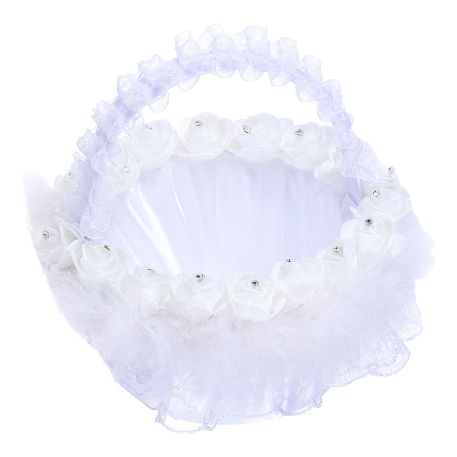 material: cesta de niña de las flores, hecha de tela satinada de primera calidad, elegante y romántica.