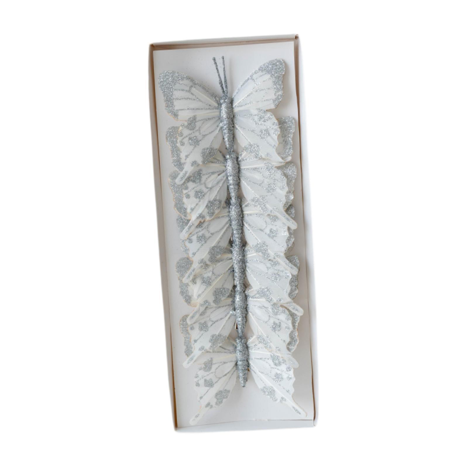 1 caja de adornos navideños con forma de mariposa y purpurina