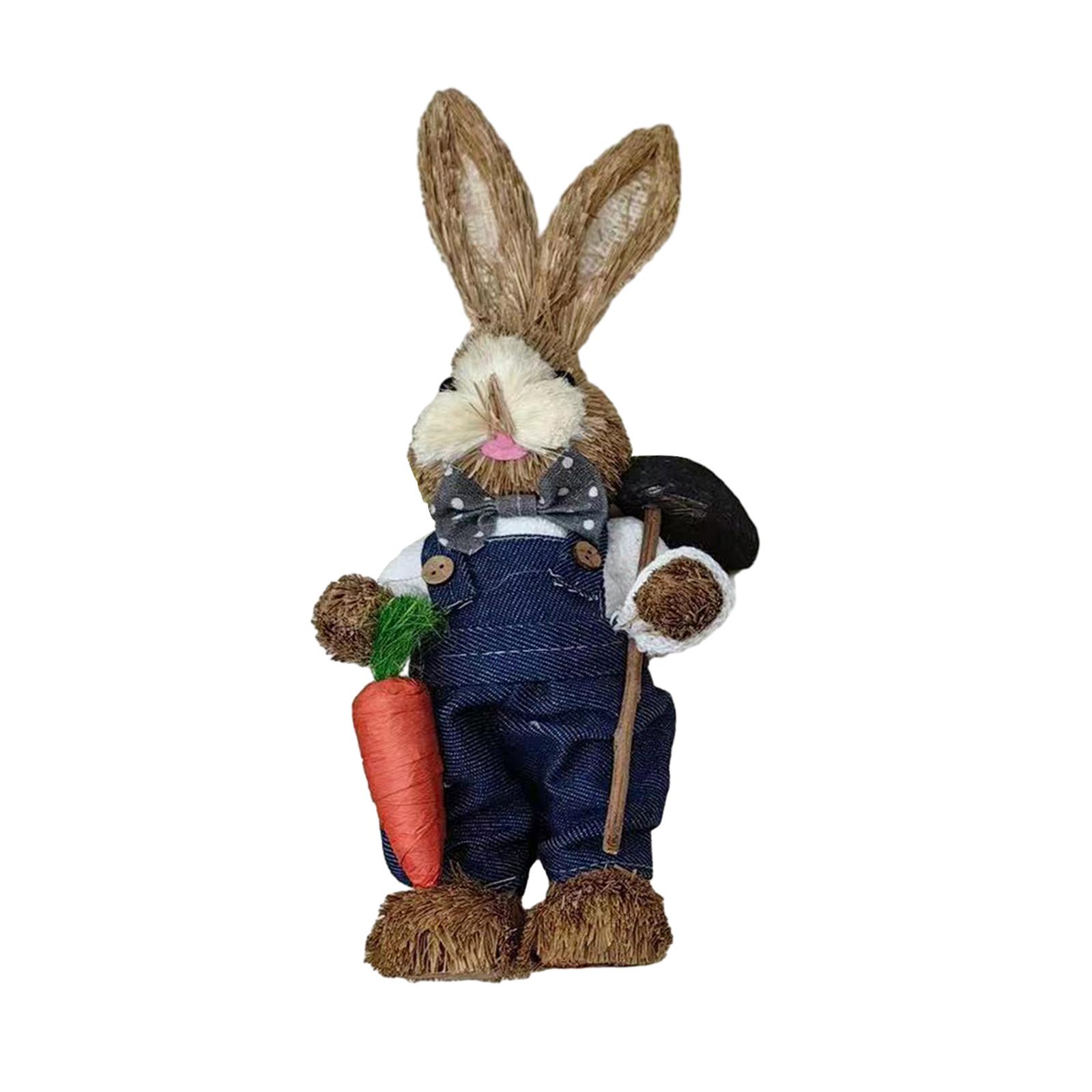 【decoración de pascua】muñeco de conejo tejido de paja hecho a mano adecuado para patios, jardines, casas, patios delanteros y traseros; utilízalos para decoraciones de primavera, pascua, búsqueda de huevos de pascua y decoración de mesa.