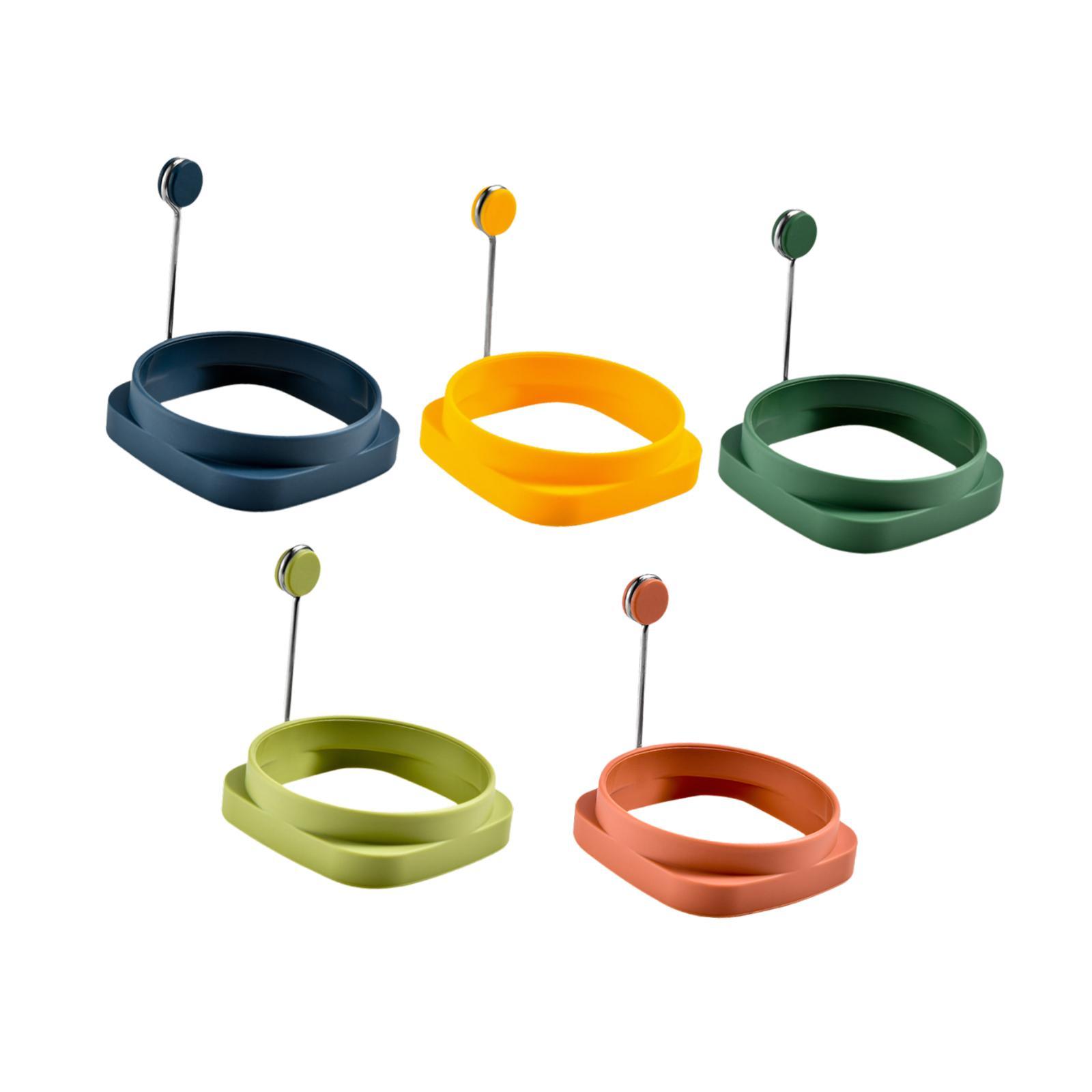 【juego colorido de cinco】: el paquete incluye cinco anillos para freír huevos vívidos en amarillo, verde lago, verde hierba y azul dorado oscuro para agregar un toque de color a su colección de herramientas de cocina.