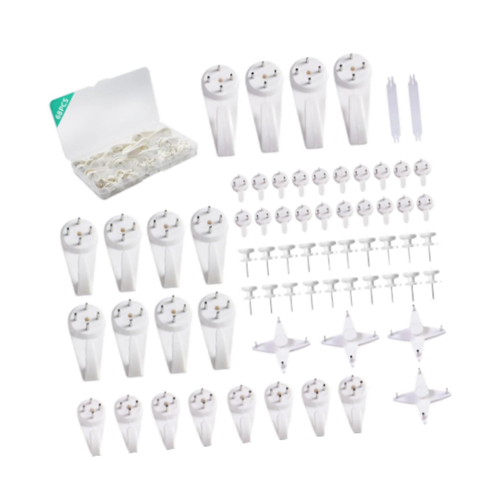 【material de primera calidad】: el juego de ganchos para colgar cuadros está hecho de material plástico de calidad, que es muy resistente, de tamaño pequeño, no daña la pared y no es fácil de aflojar.