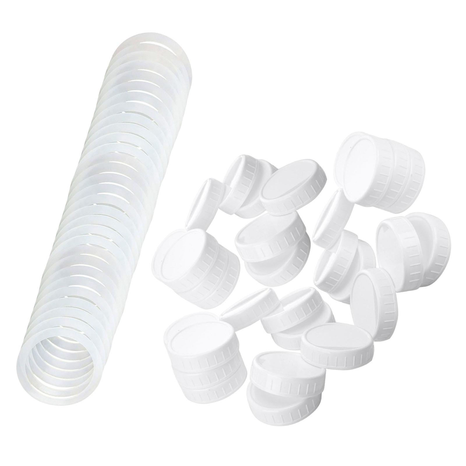 Cantidad abundante: un juego de 30 tapas de almacenamiento con tapa acanalada blanca para frascos es suficiente para su uso diario. los anillos de sellado a juego le dan a la tapa un buen rendimiento de sellado para mantener alimentos, granos, condimentos y bebidas frescos y seguros para el almacenamiento.
