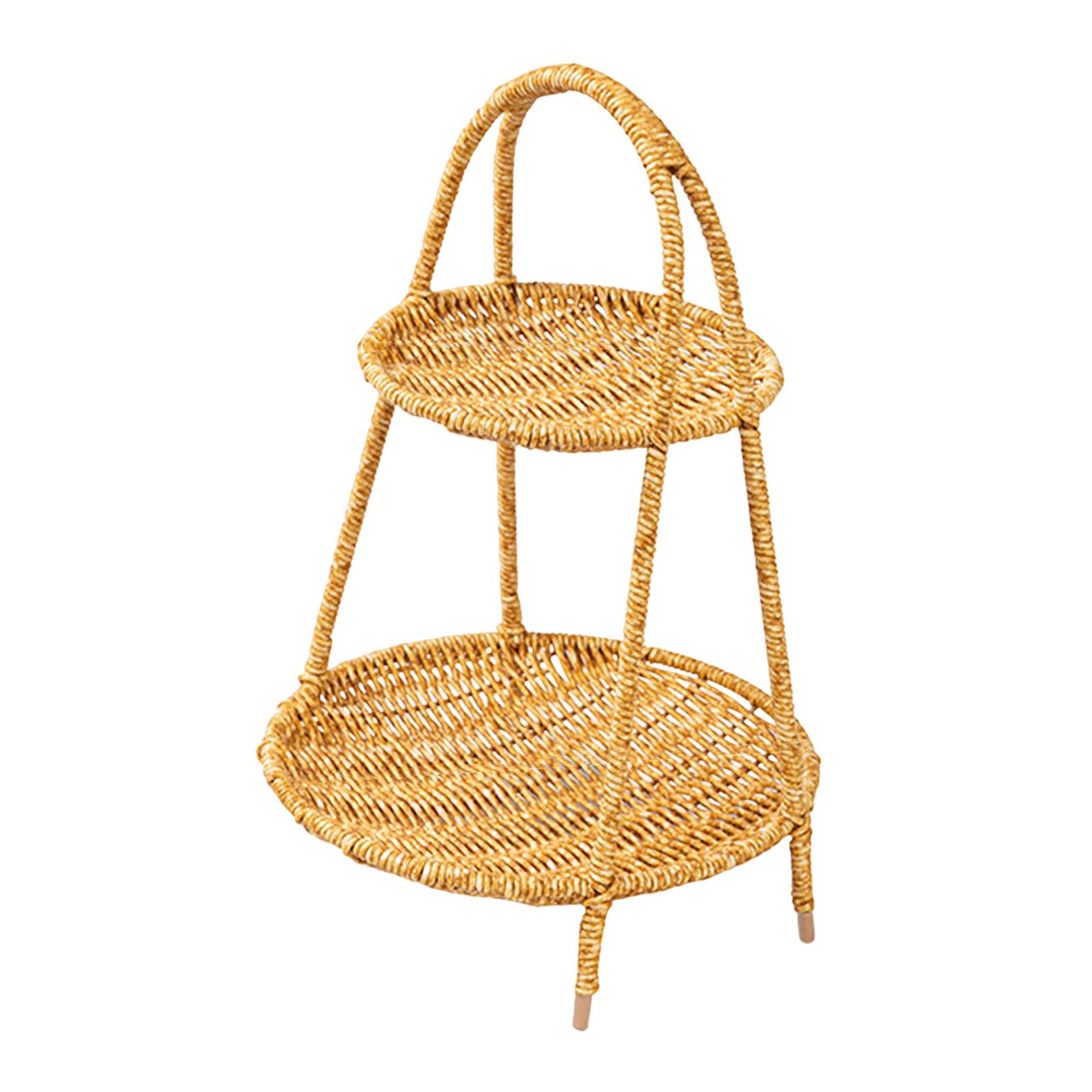 Magideal - Bandeja Redonda De Ratán, Bandeja De Cesta Tejida, Con Asa, Estante Tejido A Mano, Organizador De Cocina, Para Accesorios De Fotos, Desayuno, Decoraci Ronda Dos Capas | Lider Electrohogar