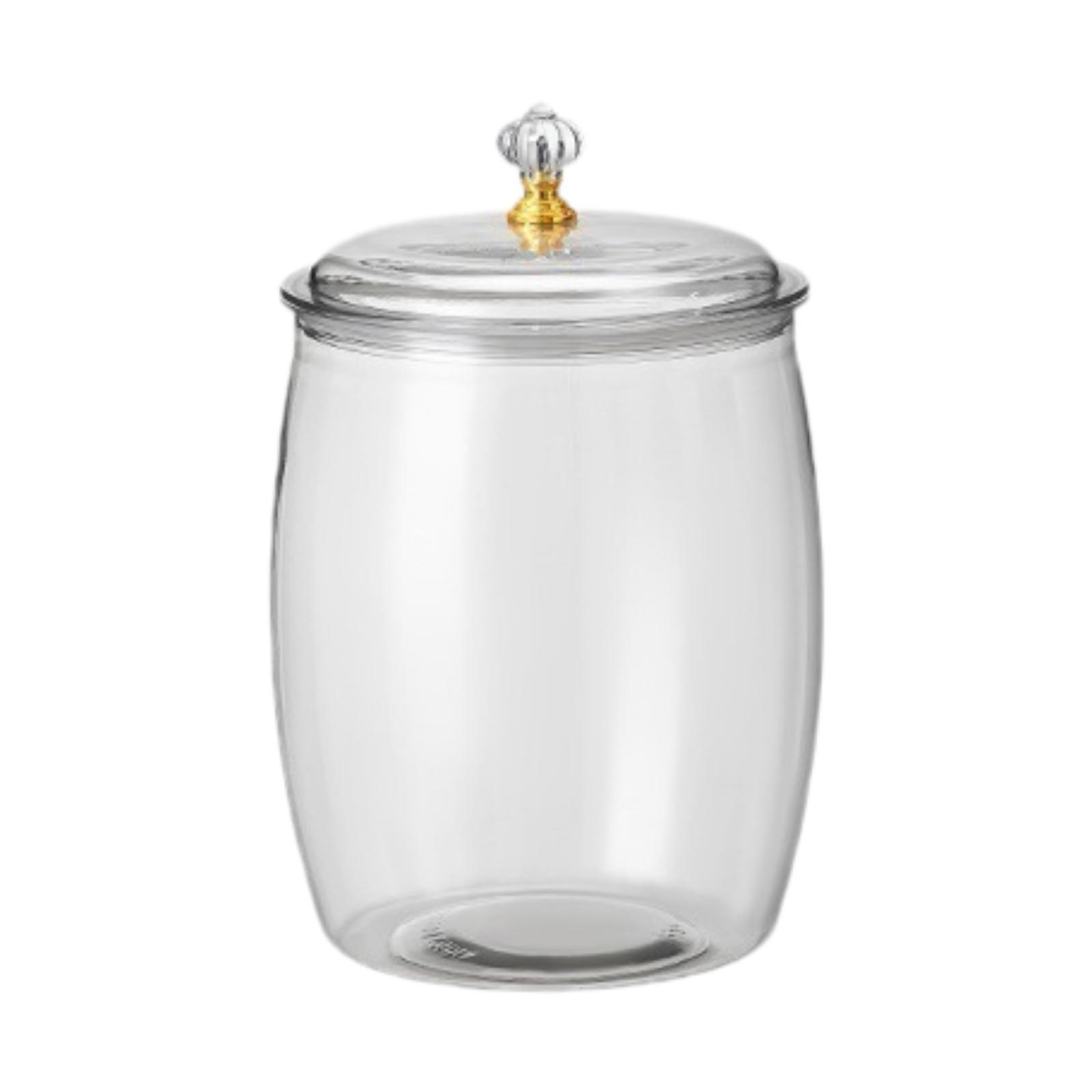 【diseño elegante y transparente】: este frasco de almacenamiento presenta una apariencia clara y lujosa con un cuerpo transparente y un asa dorada, agregando un toque de elegancia a su cocina.