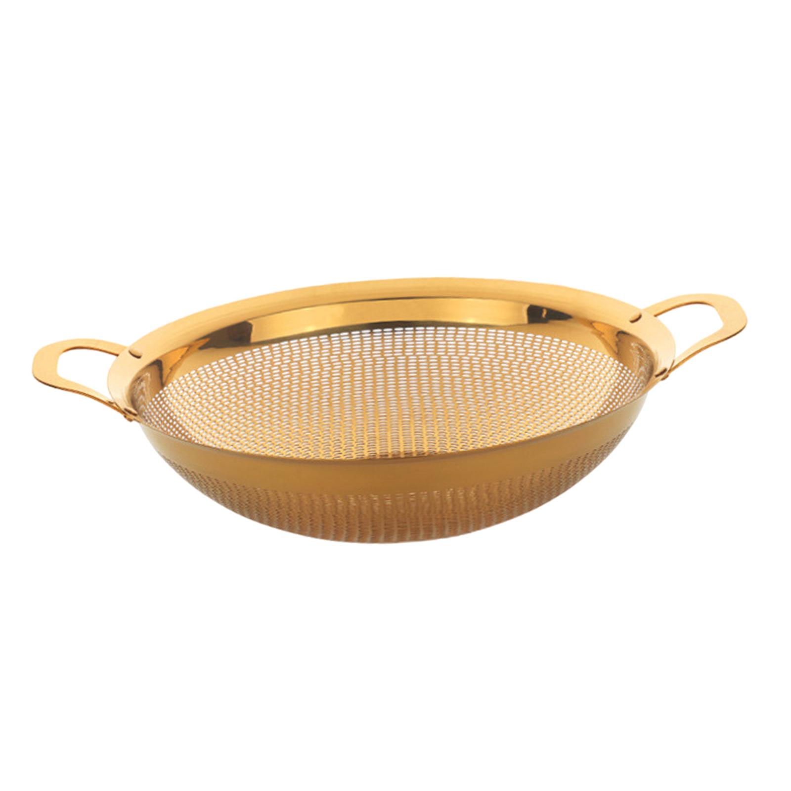 Magideal - Cesta Coladora De Alimentos Para Cocina, Cuenco Colador De Acero Inoxidable, Colador De Malla, Colador De Alimentos Con Asas Para Pasta, Bayas, Espagu Dorado