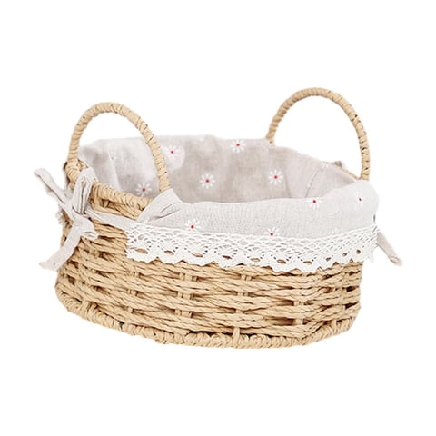 Magideal - Cesta De Almacenamiento, Cesta Para Servir Alimentos, Contenedor De Almacenamiento Para El Hogar Con Asa, Caja De Cosméticos, Organizador De Artículos Redondo S