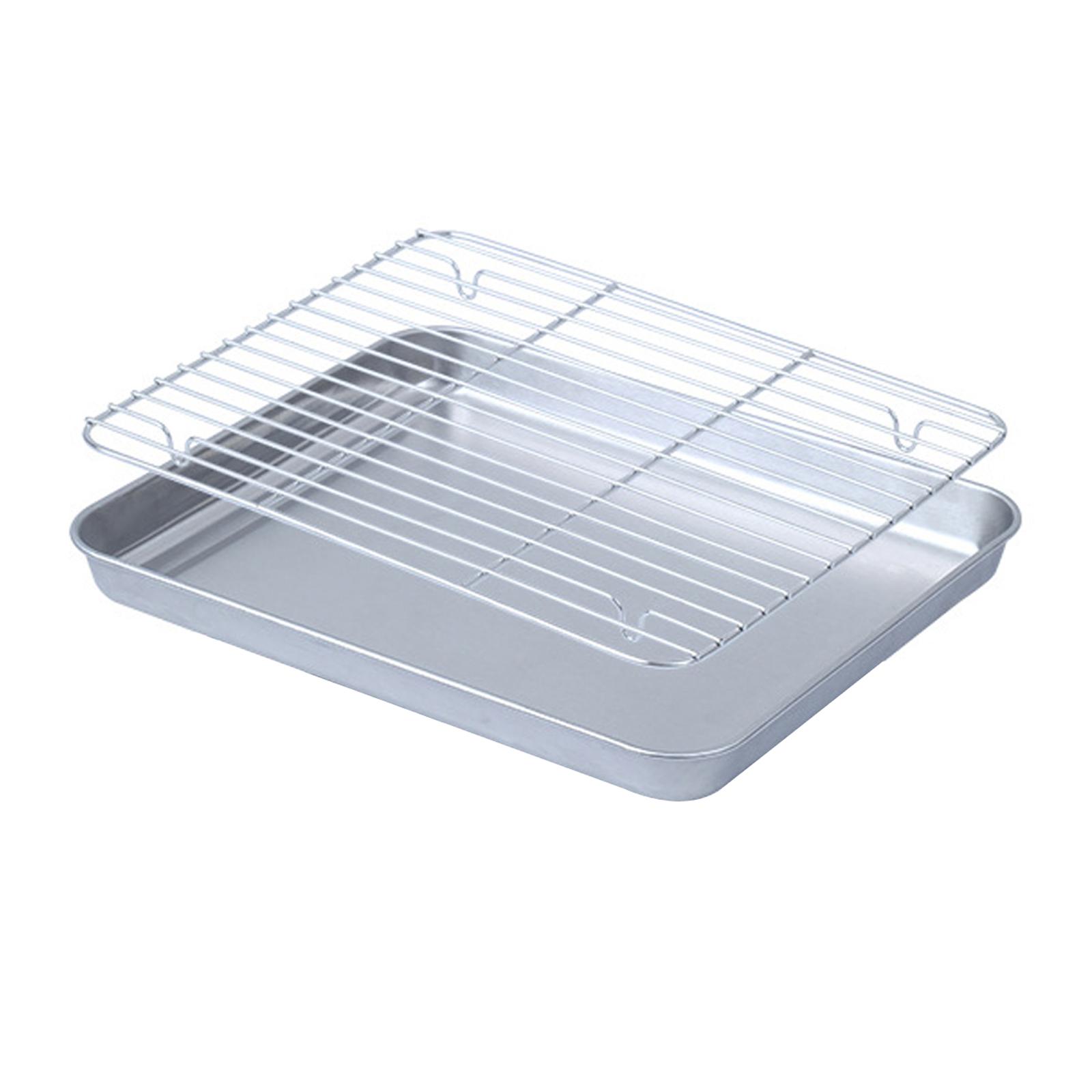 【bandeja de acero inoxidable】el juego de bandejas y rejillas para hornear está hecho de material de acero inoxidable de primera calidad, la estructura resistente puede contener alimentos más pesados y será duradera durante años de uso.