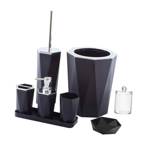 Magideal - 7 Juegos De Decoración De Baño, Cubo De Basura, Botella De Loción, Escobilla De Baño, Vaso Para Cepillo De Y De Jabón Y Jabonera Y Negro | Lider Electrohogar