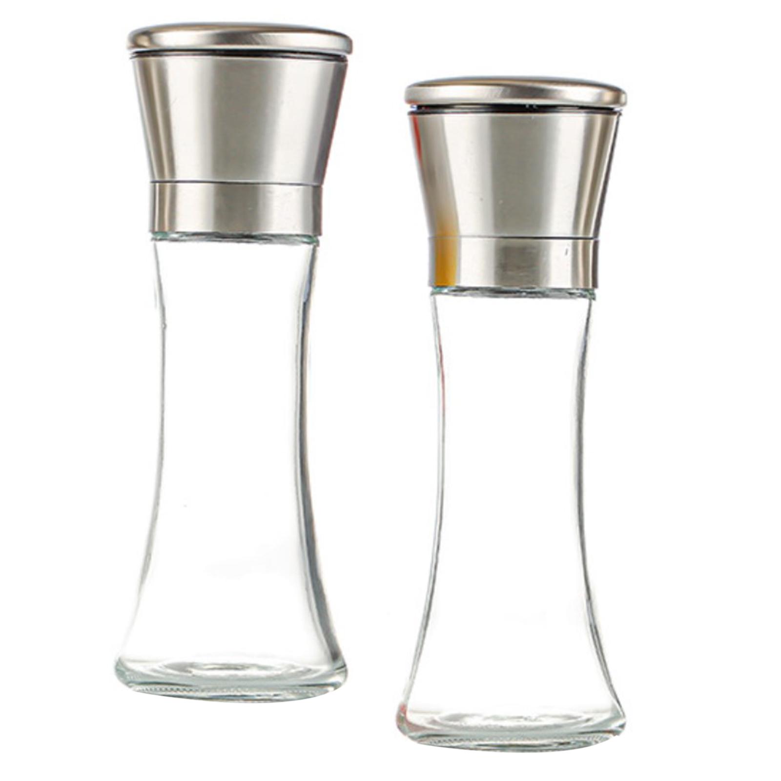 【material】: juego de molinillo de sal y pimienta hecho de vidrio y acero inoxidable, molinillo de pimienta diseñado para durar y agregar un toque de elegancia a su cocina.