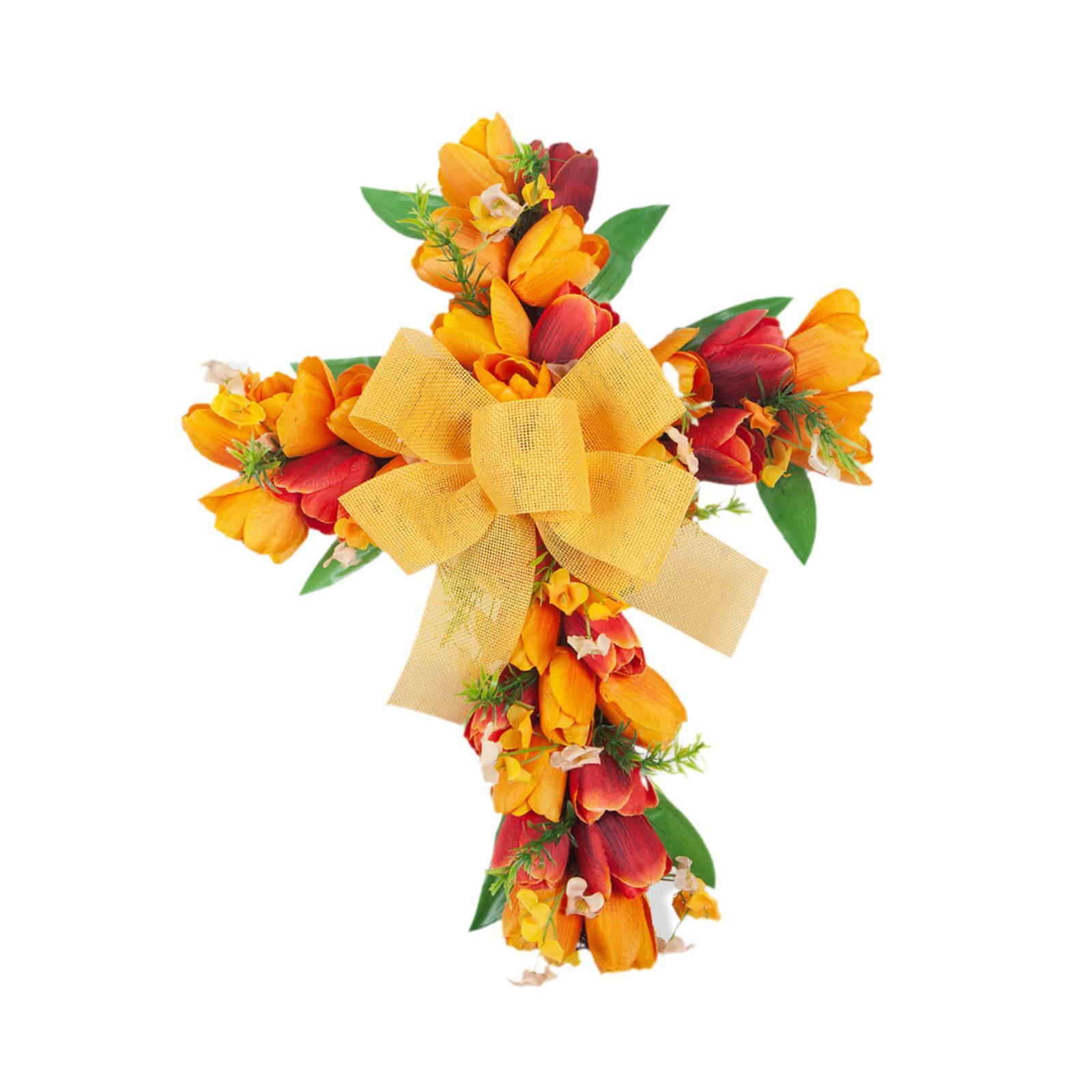 【diseño único】: esta corona de cruz de pascua está adornada con tulipanes artificiales, lazo y hojas verdes. seguro que agregará vigor y alegría a su hogar