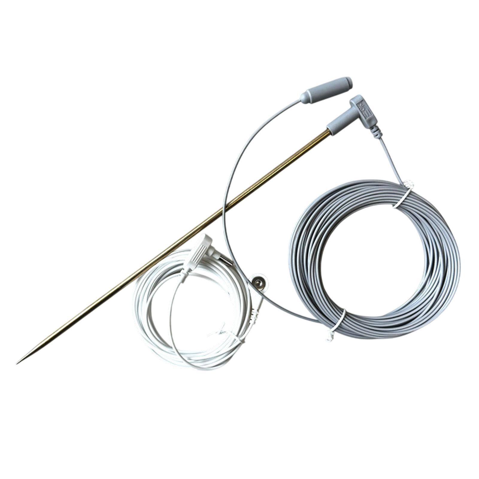 【tamaño】: diámetro del pasador de latón 4,8 mm/0,19 pulgadas, longitud 30 cm /11,81 pulgadas; cable de conexión a tierra con pasador de latón de 2,2 mm/0,09 pulgadas, longitud 12 m/472,44 pulgadas/40 pies; cable de tierra blanco de 4,5 m/177,17 pulgadas/15,8 pies