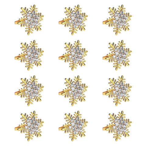 Bothyi - 12 Piezas De Porta Servilletas Con Forma De Copo De Nieve Para Navidad, Para La Fiesta De Bodas De Acción De Gracias, Color Dorado