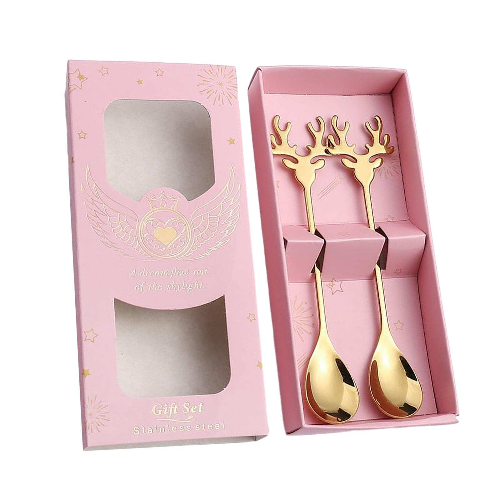Magideal - Juego De Cucharas Navideñas, Cubiertos Navideños Con Caja De Regalo, Kits De Cubiertos Navideños, Cuchara De Café De Acero Inoxidable Para Vacaciones, 2 Uds Tipo Alce | Lider Electrohogar
