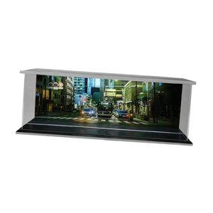 Características: vitrina led de estacionamiento simulada 1/64 con cubierta a prueba de polvo y luz led incorporada. cada tema de fondo es la escena callejera de la ciudad. carga usb