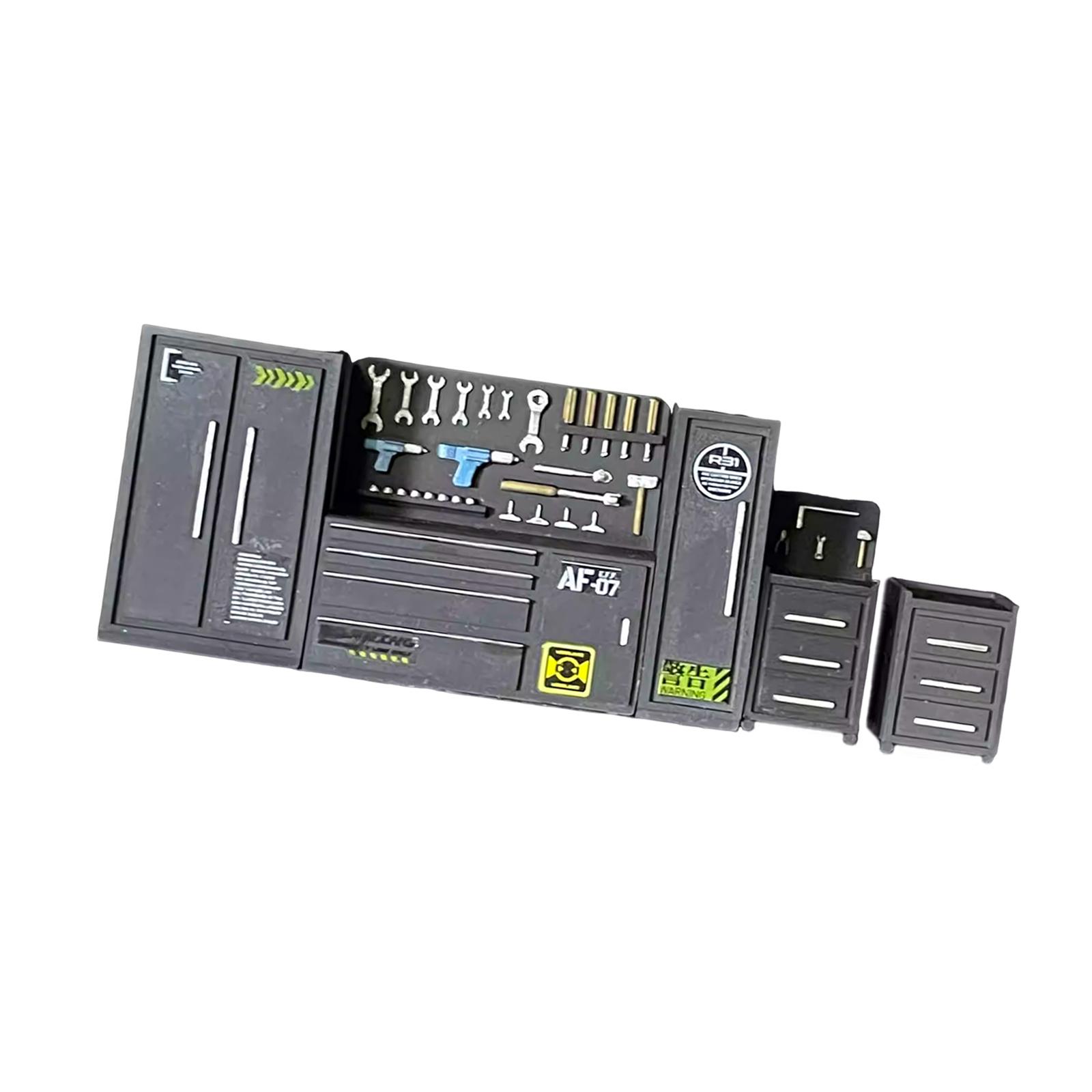 【el juego incluye】el juego de banco de trabajo de garaje a escala 1/64 viene como un juego completo que incluye un banco de trabajo, un gabinete de herramientas y varias herramientas de reparación de automóviles para una construcción de escenas realista.