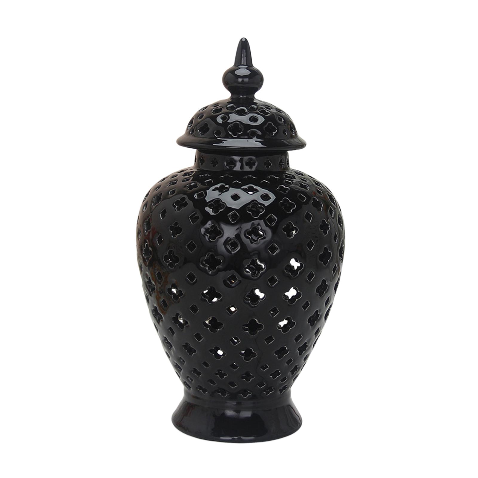 Tarro de cerámica: clásico esmalte negro ahuecado recipiente de almacenamiento decorativo con tapa exquisita creativa, tarro de jengibre de cerámica con suave, elegante.