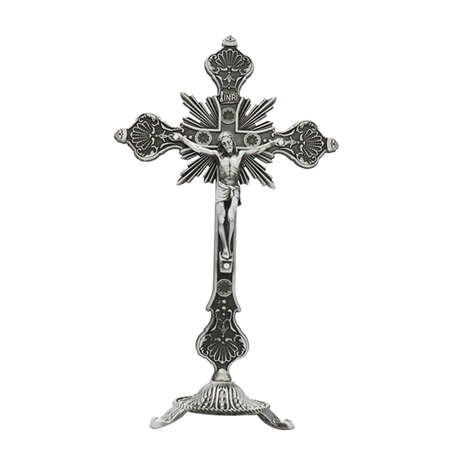 【tamaño del adorno del crucifijo】 el crucifijo de pie mide aprox. 14,5 cm x 25,5 cm/5,71 pulgadas x 10,04 pulgadas, tamaño adecuado para decoraciones de mesa.